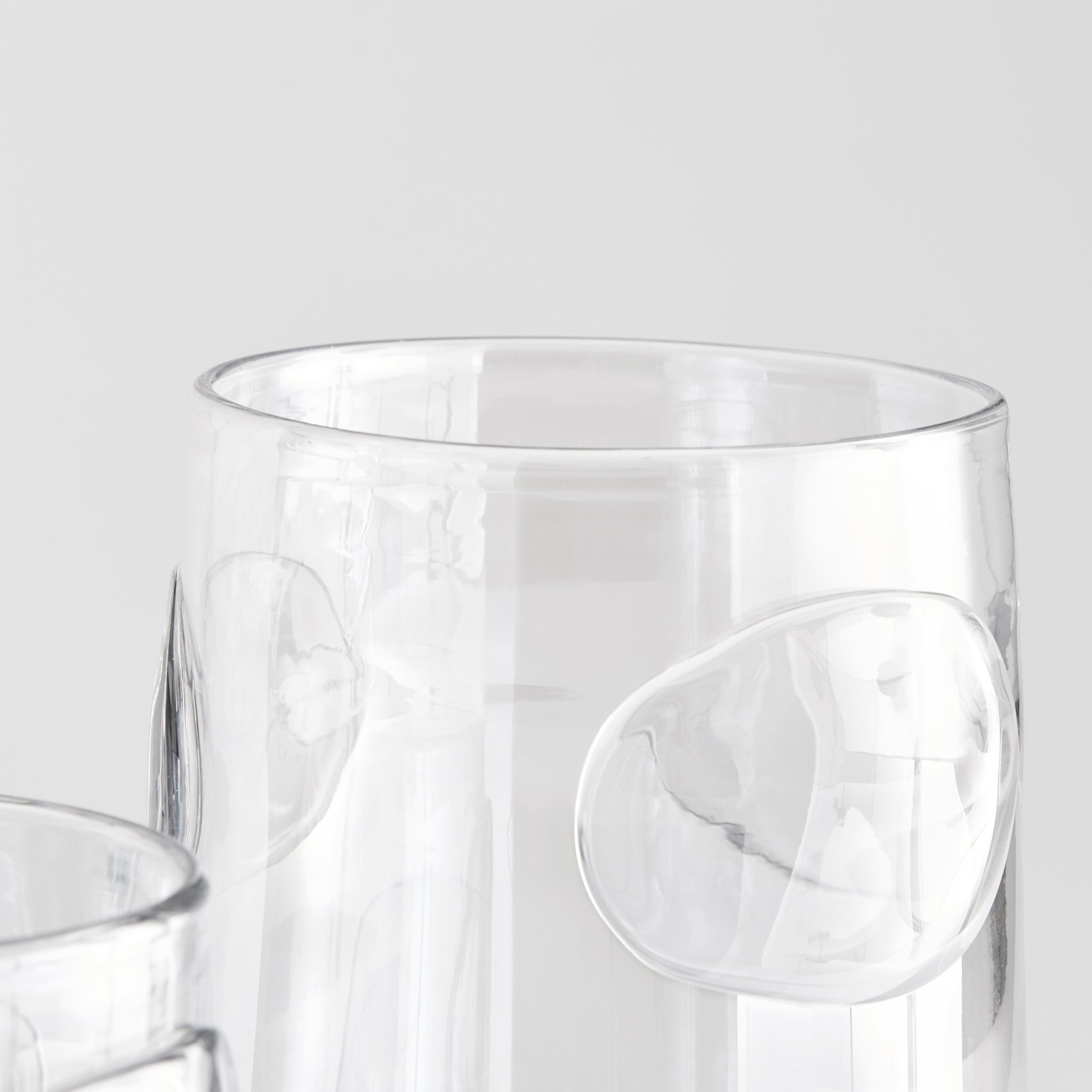 The Aquilas are a dynamic duo of clear glass vases with a classic cylindrical contour. Clear glass circles are added atop a clear glass body, adding dimension and texture. Use as a centerpiece in a dining room or start a conversation by placing atop a living area coffee table. Available in two sizes. Water-tight.