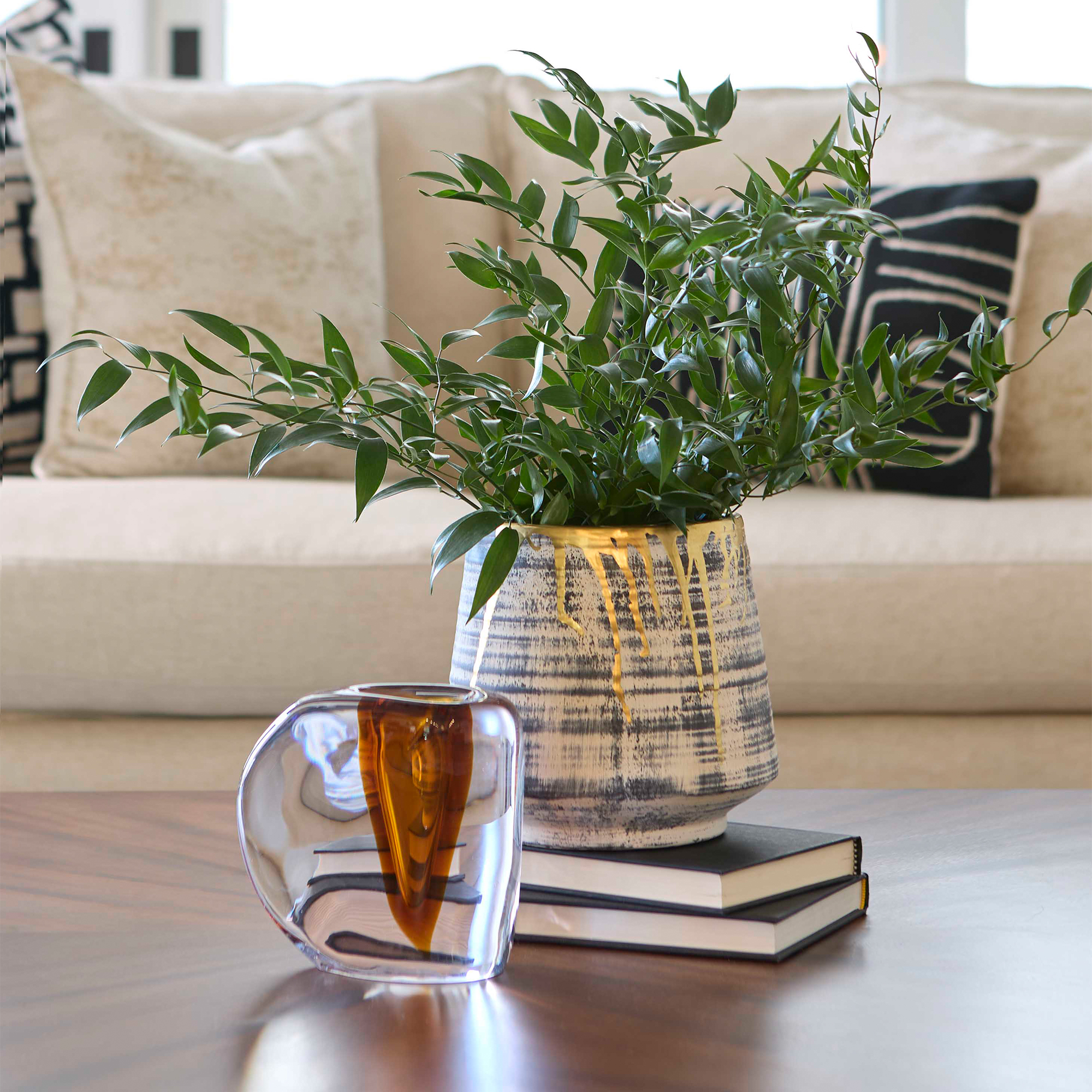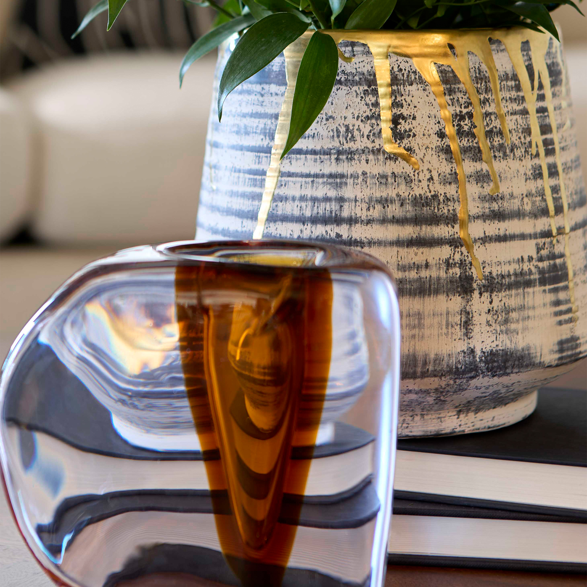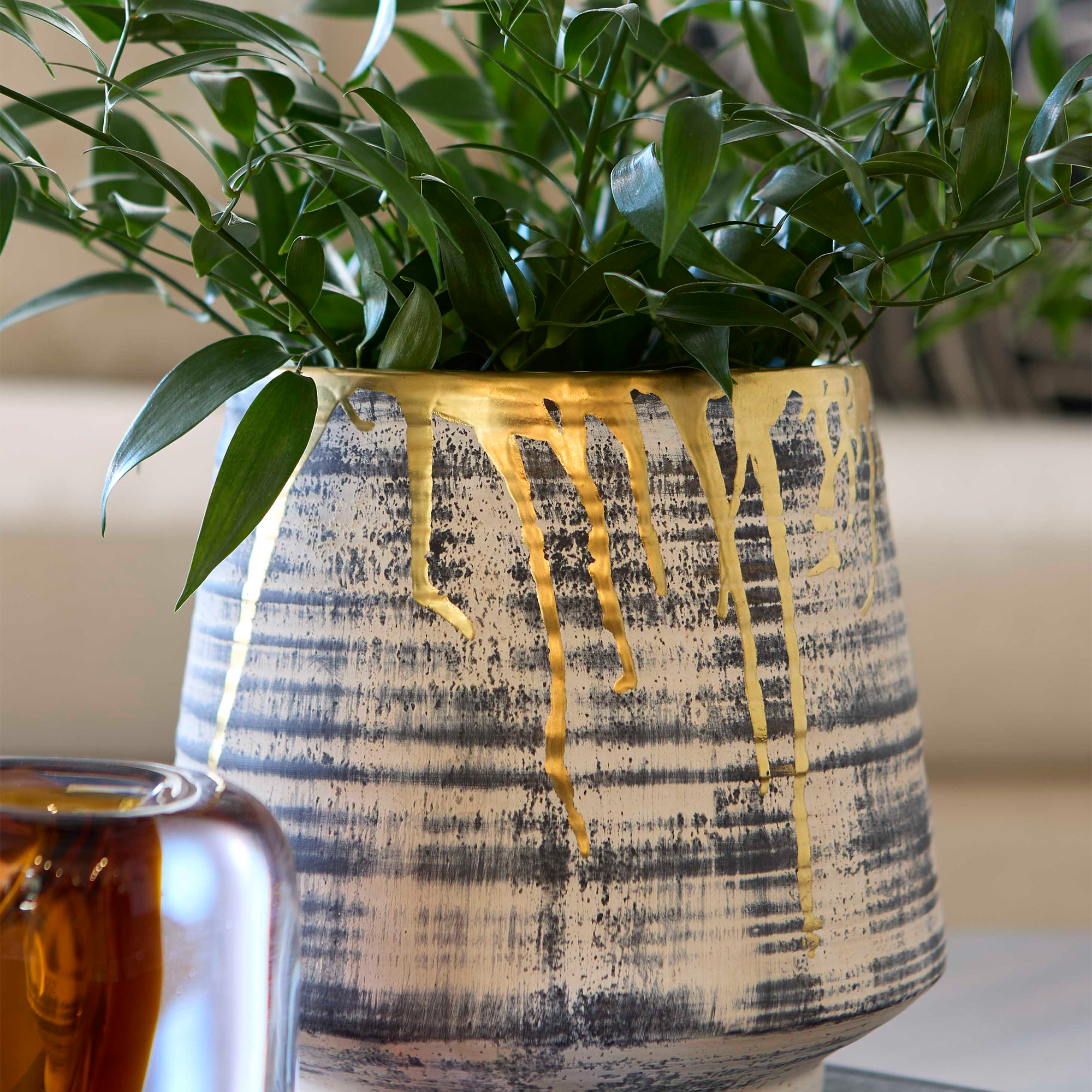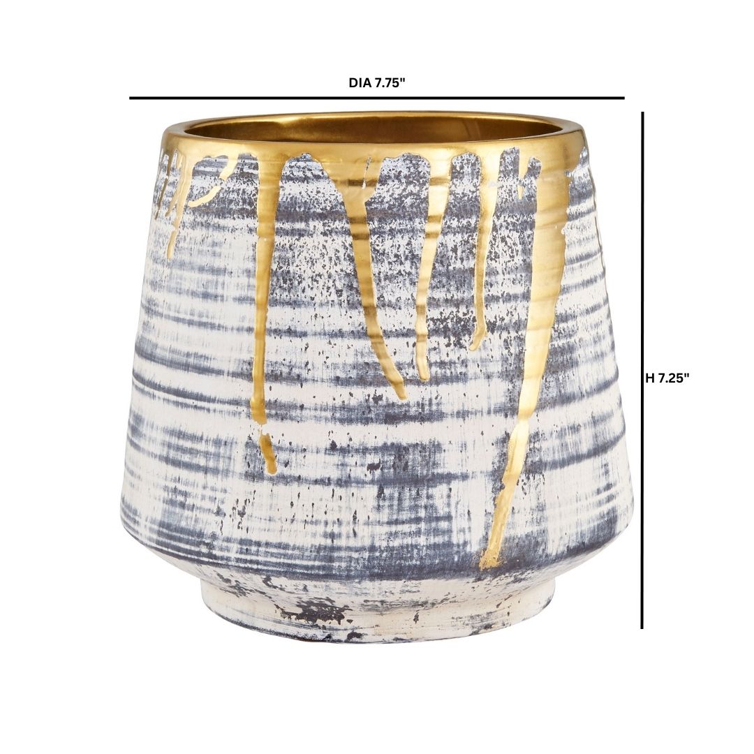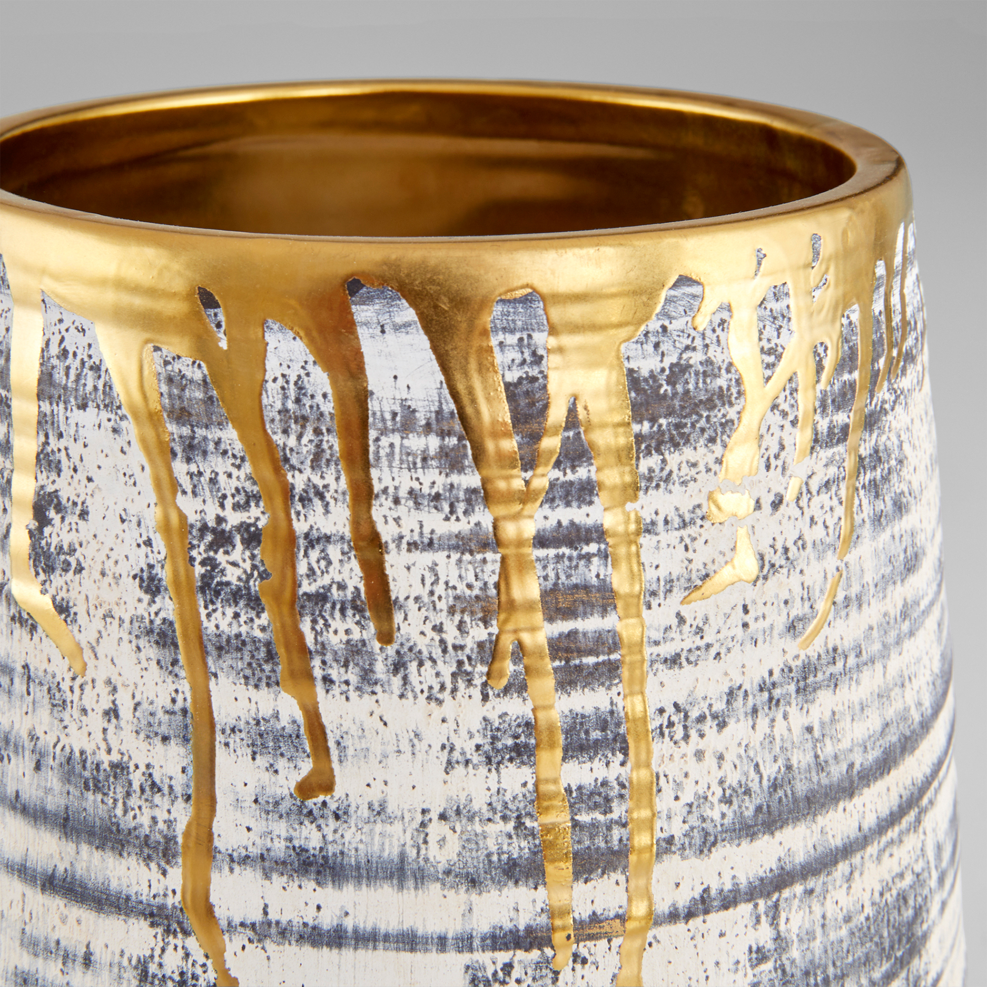 Ancient allure and modern worldliness converge in the Athenian collection of ceramics. Each piece is crafted with precision to evoke the grandeur of historic Greece with a contemporary twist. A subtle black wash applied to the body’s horizontal striated pattern mimics the depth and texture seen in the architectural marvels that define the Athenian skyline. Finished with a luxurious gold gilded rim, the Athenian Collection exudes a sense of mystery and intrigue, adding drama to its already striking presence. With its large-scale design, each piece commands attention and makes a bold statement in any space. Available in multiple sizes and styles.