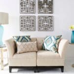 • Glass with Cream Linen Shade and Patterned Liner