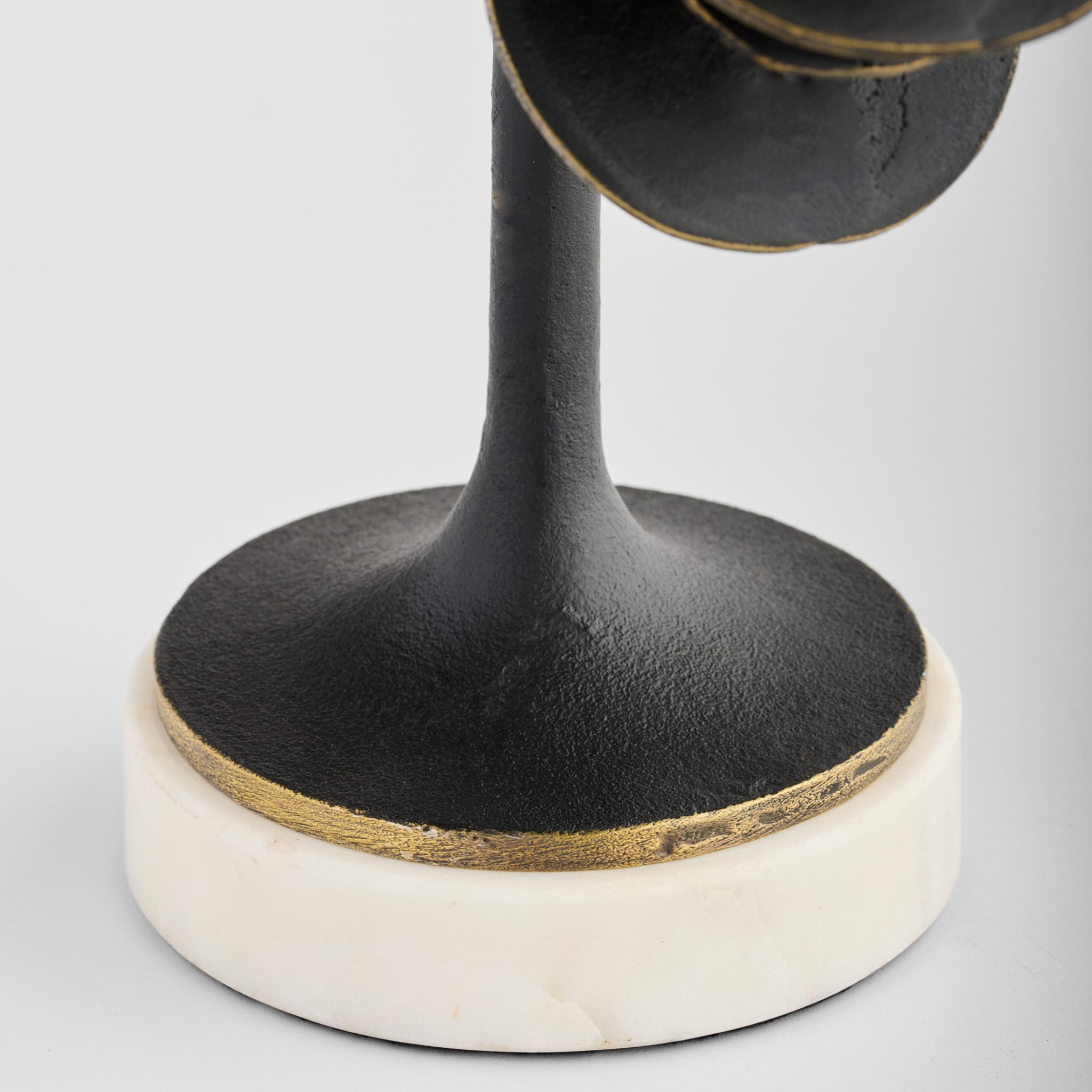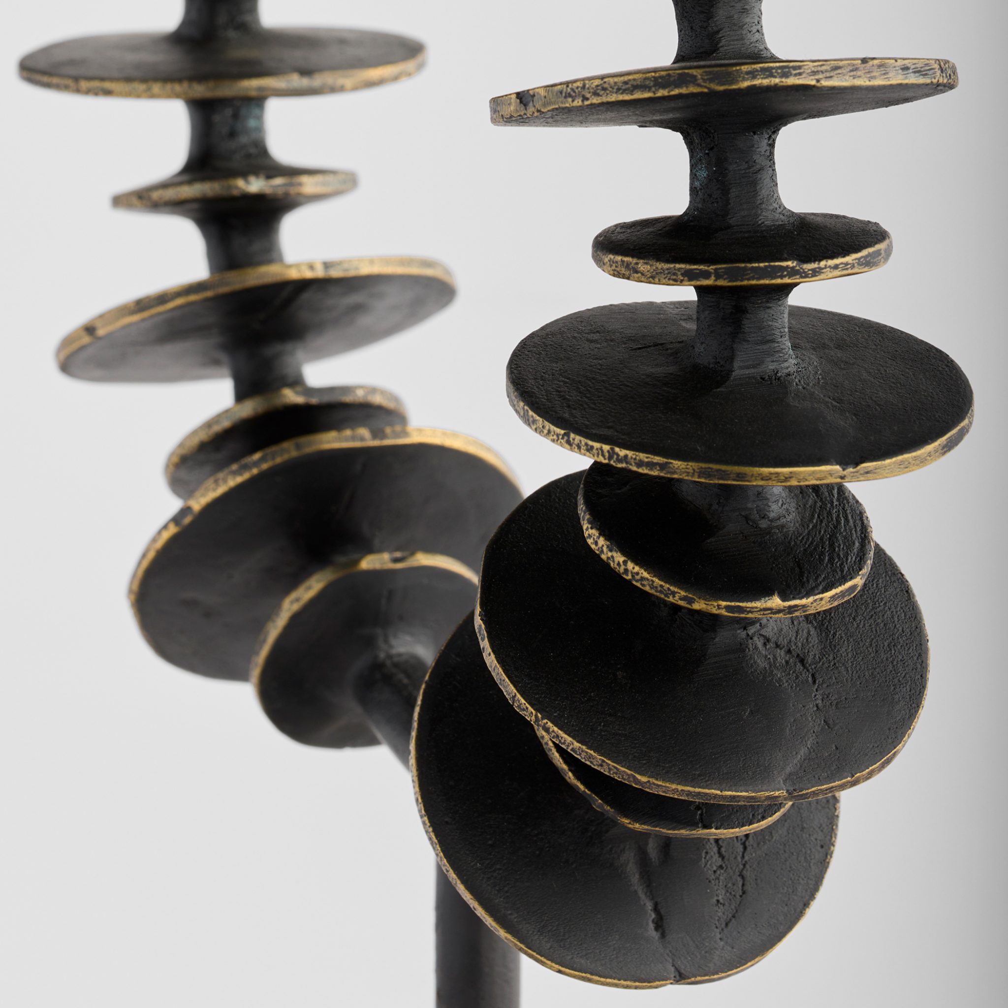 The Barcelo Collection reflects the influence of Catalan modernism and Barcelona’s striking architecture. Crafted from cast brass with an antique patina finish, its design features alternating disc sizes with subtly exposed rubbed brass edges. The design tapers off to sit atop a sleek white Banswara marble base, blending bold structure with elegant contrast.