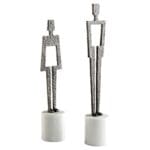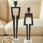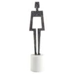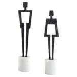 The eponymous duo, Benedick and Beatrice, are modeled after the tumultuous, yet enduring Shakespearean couple in”Much Ado About Nothing.” The pair of male and female silhouettes are reverently crafted from antique bronze-finished steel hammered by hand. Each sculpture is perched atop a white marble base. Display separately or as a married pair for a feature that is sure to spark conversation.