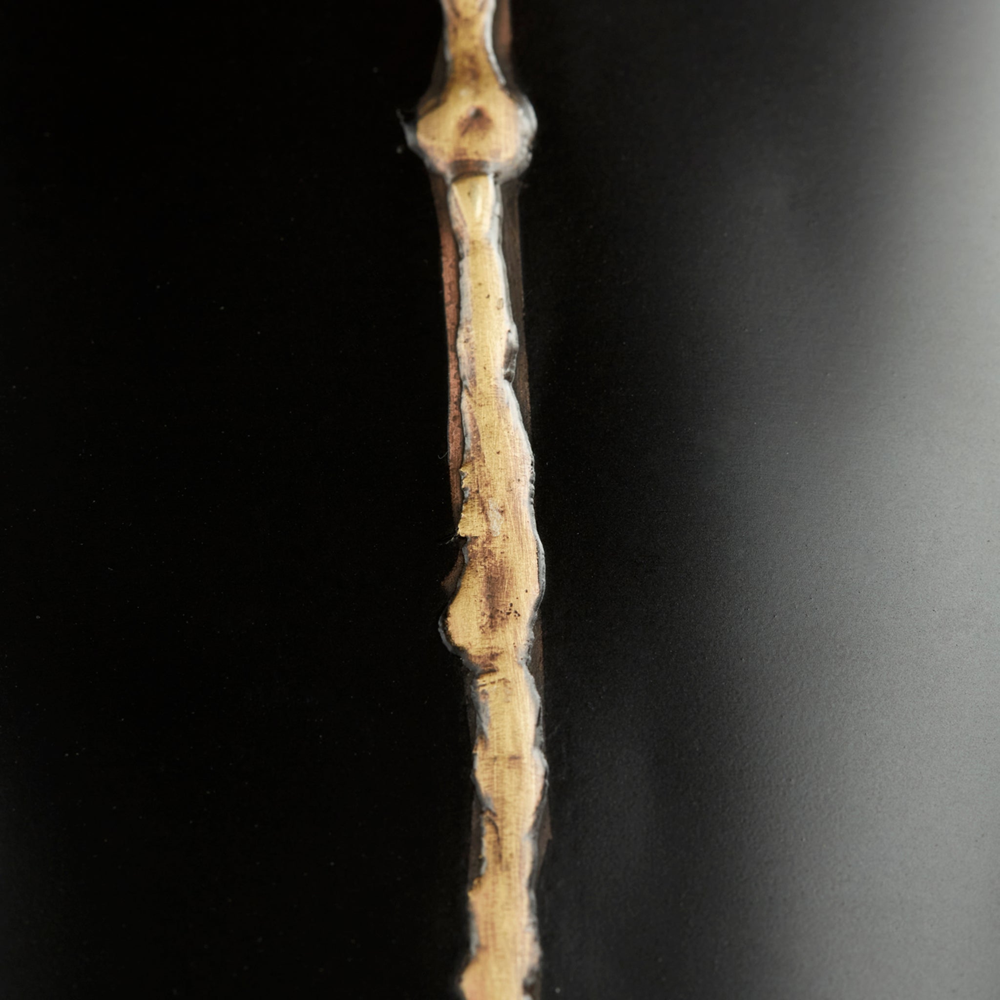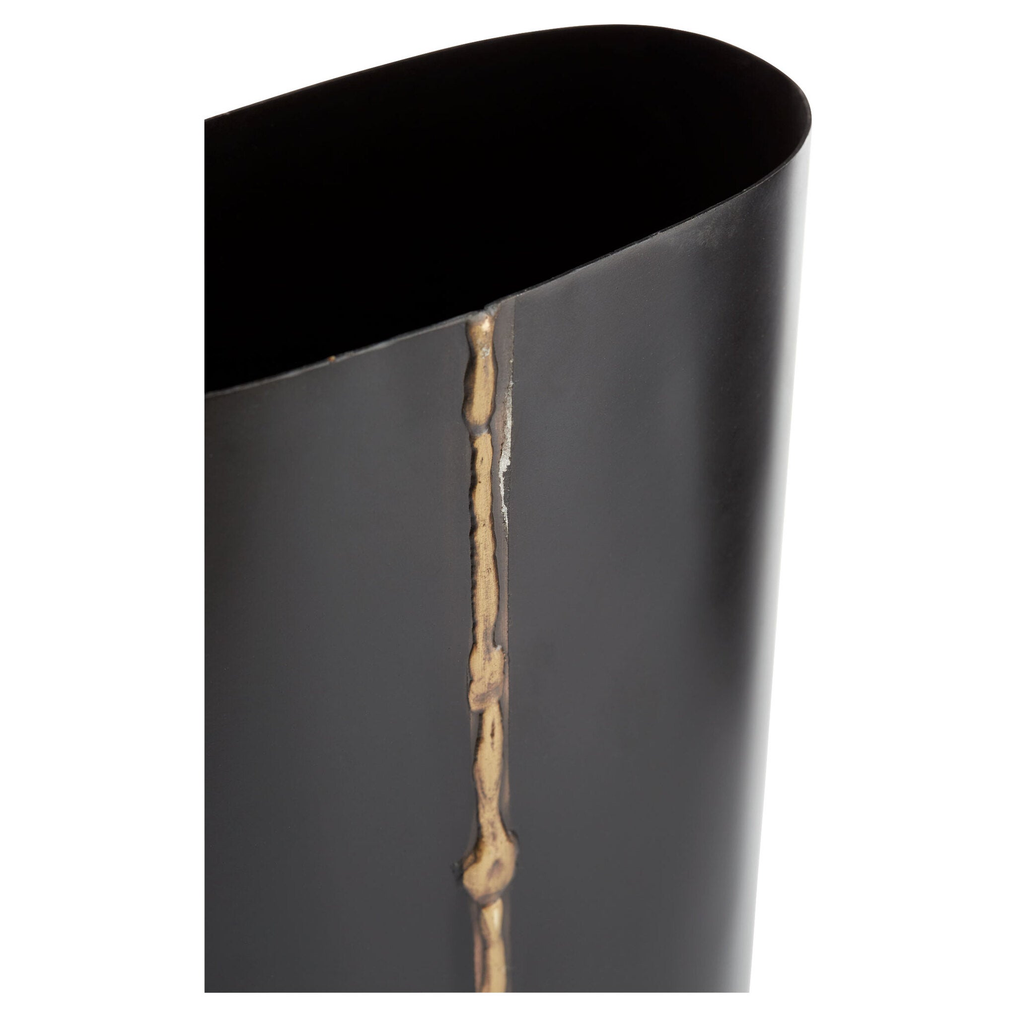 • Black with brass detail | Narrow oval-shaped vase | Not water tight | Use with a liner