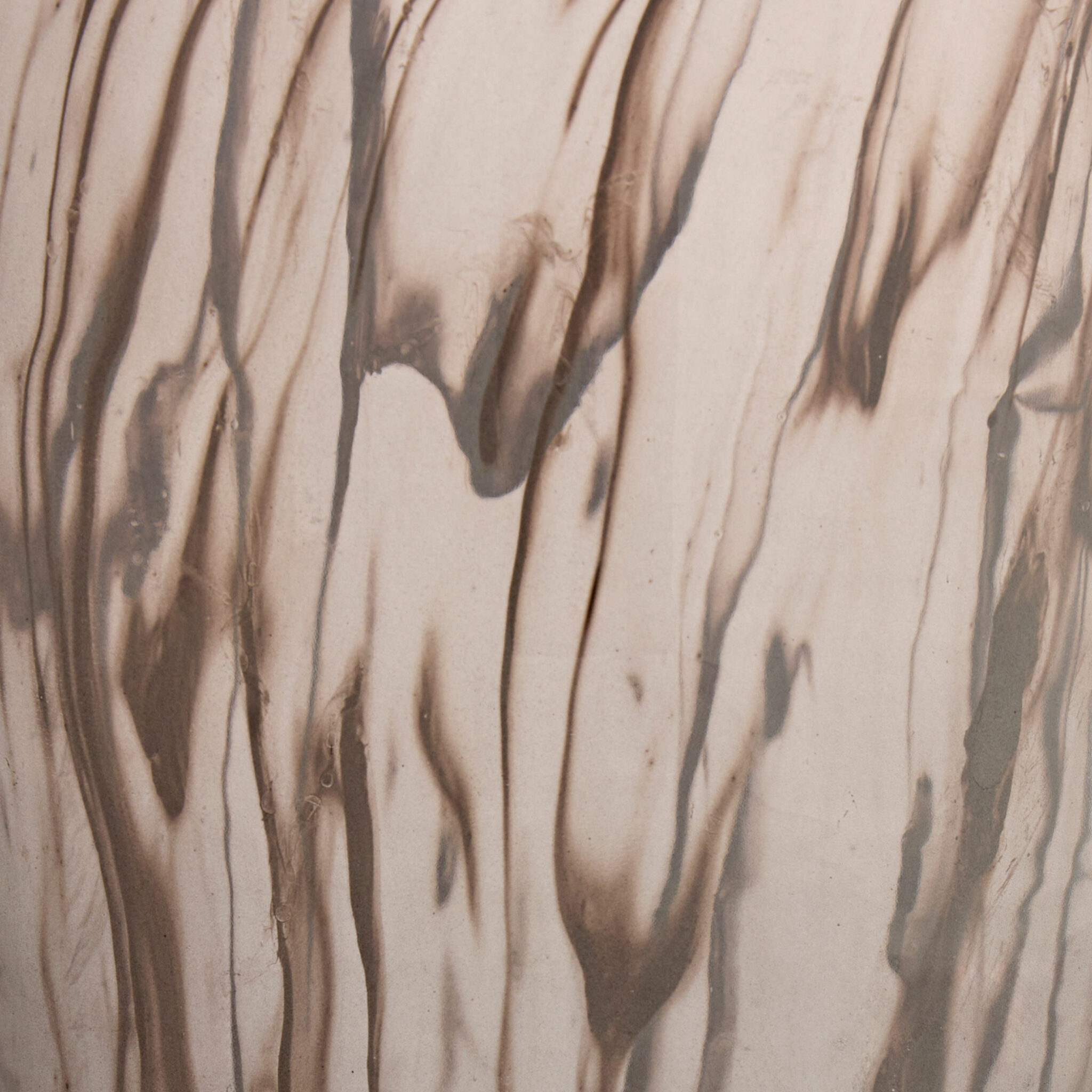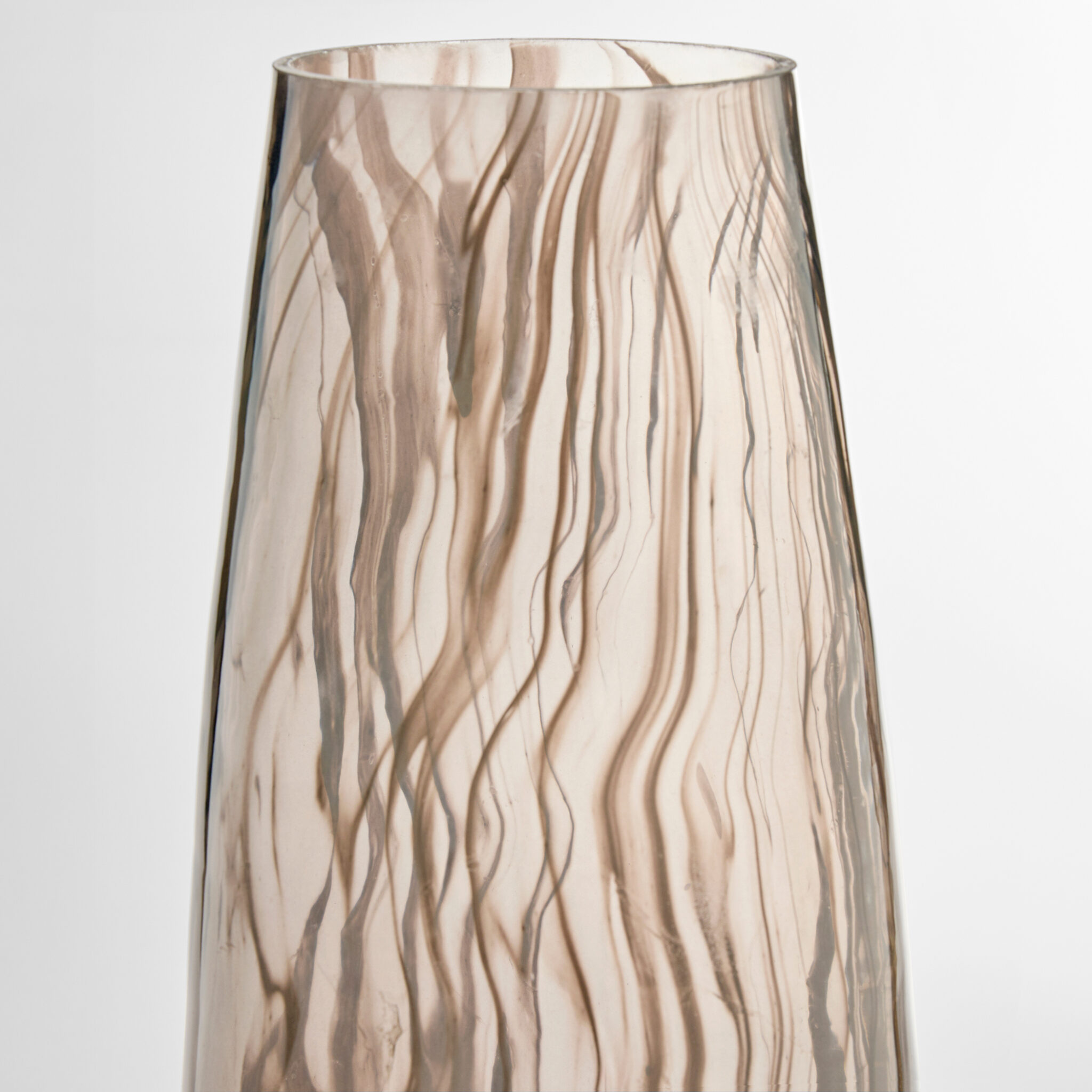 With its large-scale and bottom-tapered shape, the Billow vase, cast from transparent grey glass, serve as a canvas for the swirling white wisps that dance through the vase. Each vase is one of a kind, with its own unique pattern formed by the flowing molten glass.
