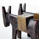 Traditional African-inspired decor gets a modern, rustic upgrade with this bronze bongo sculpture. The minimalist, angular silhouette and complementary metallic details refine the metal figurine. Dress up any mantel or living room side table.