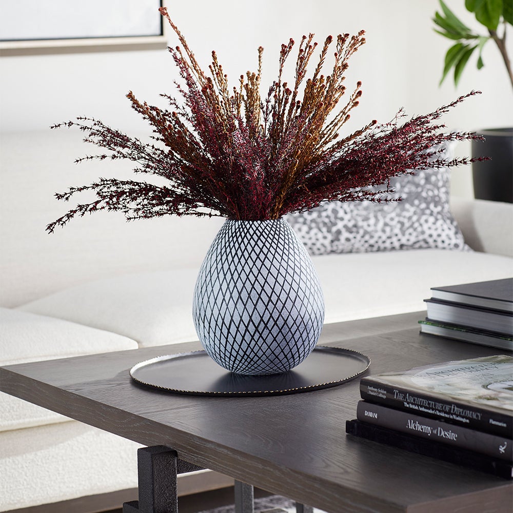 Style your home or commercial space with an adornment that’s both unassuming and on-trend. Thanks to its curved bud-silhouette, the Bozeman table vase is an excellent addition to any tabletop, counter display, or shelf styling. The subdued- green crosshatch design adds versatility, enabling this accent to simultaneously offer your design plans both minimalist appeal and bohemian charm.