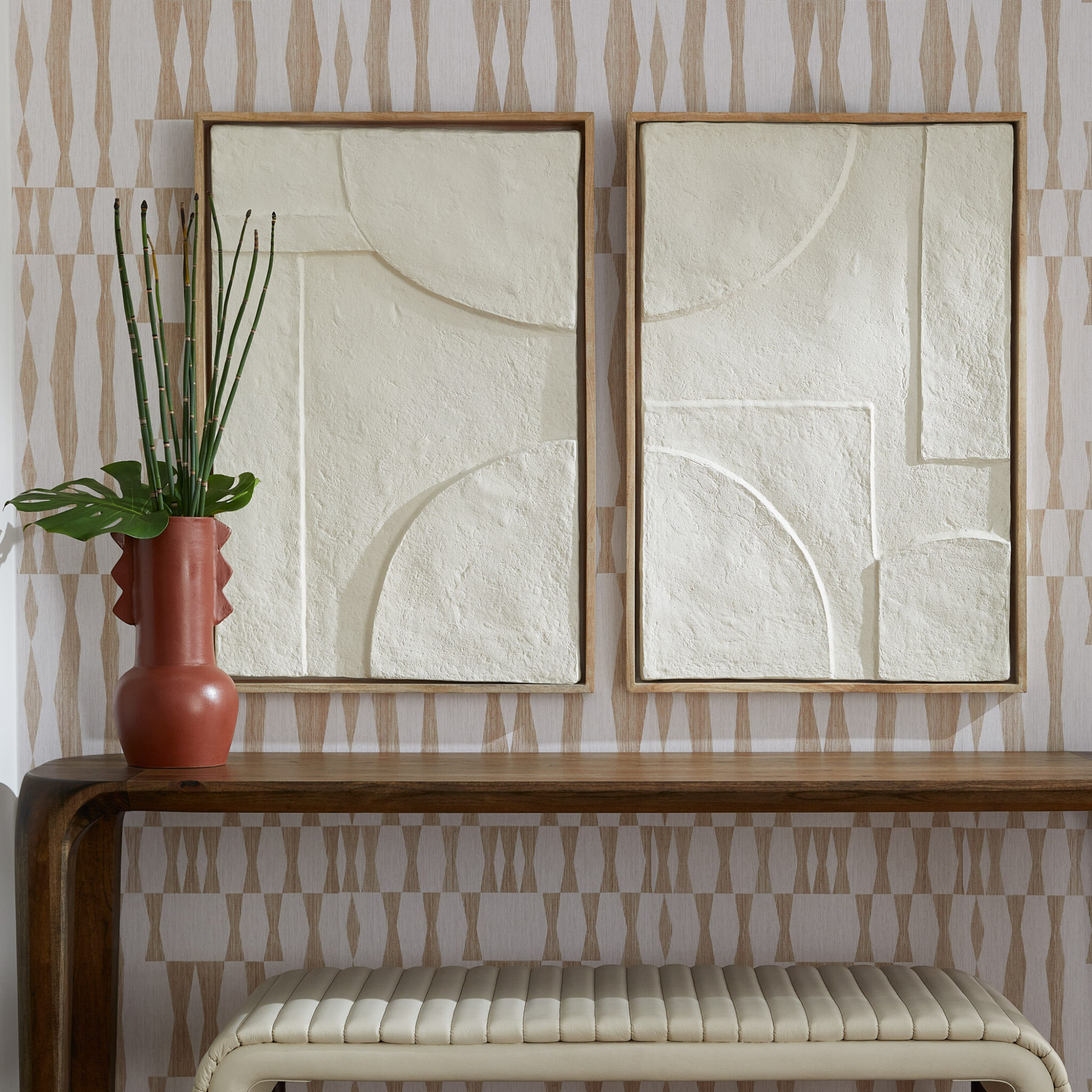 Channel Bench | Off-White | Walnut | Brass
