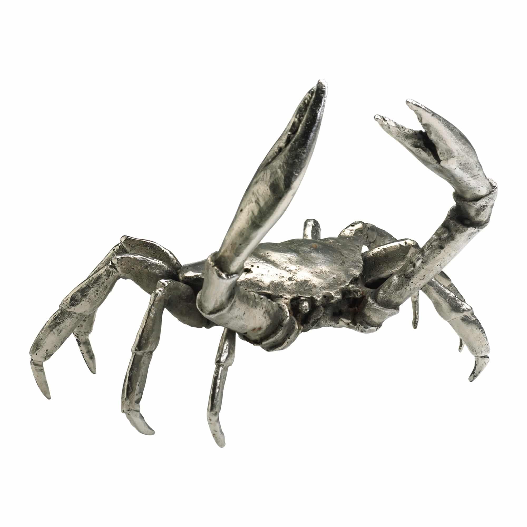 Ocean vibes wave through this large crab sculpture bringing a welcome salty freshness to a coastal or nautical themed living room or master bedroom. A glowing silver leaf finish shines on fully realized natural details.