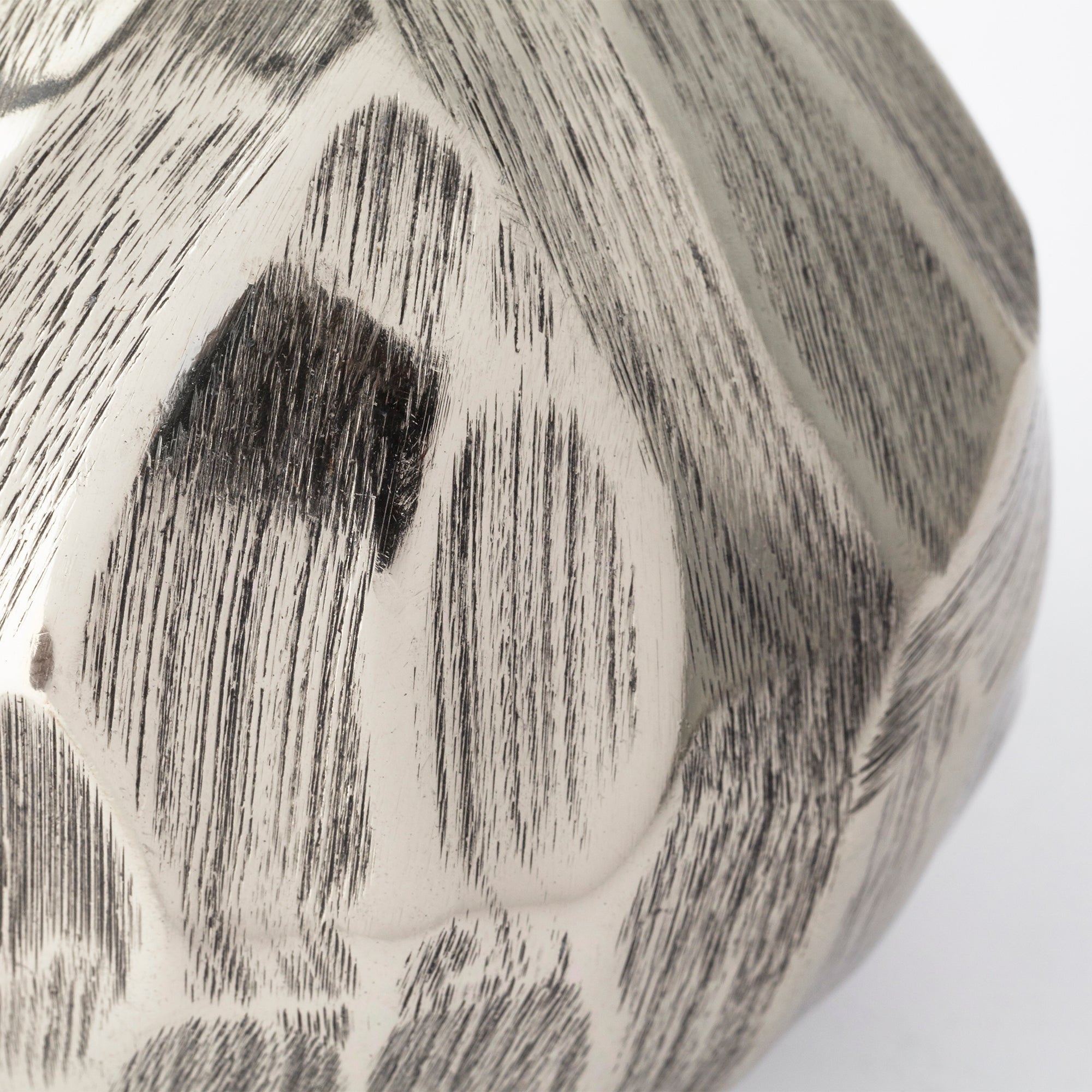 Smooth color and design are the perfect complements in this beautiful nickel filler. Smudged textures create depth on an already classic sphere shape, and enhance any cool living room scheme.