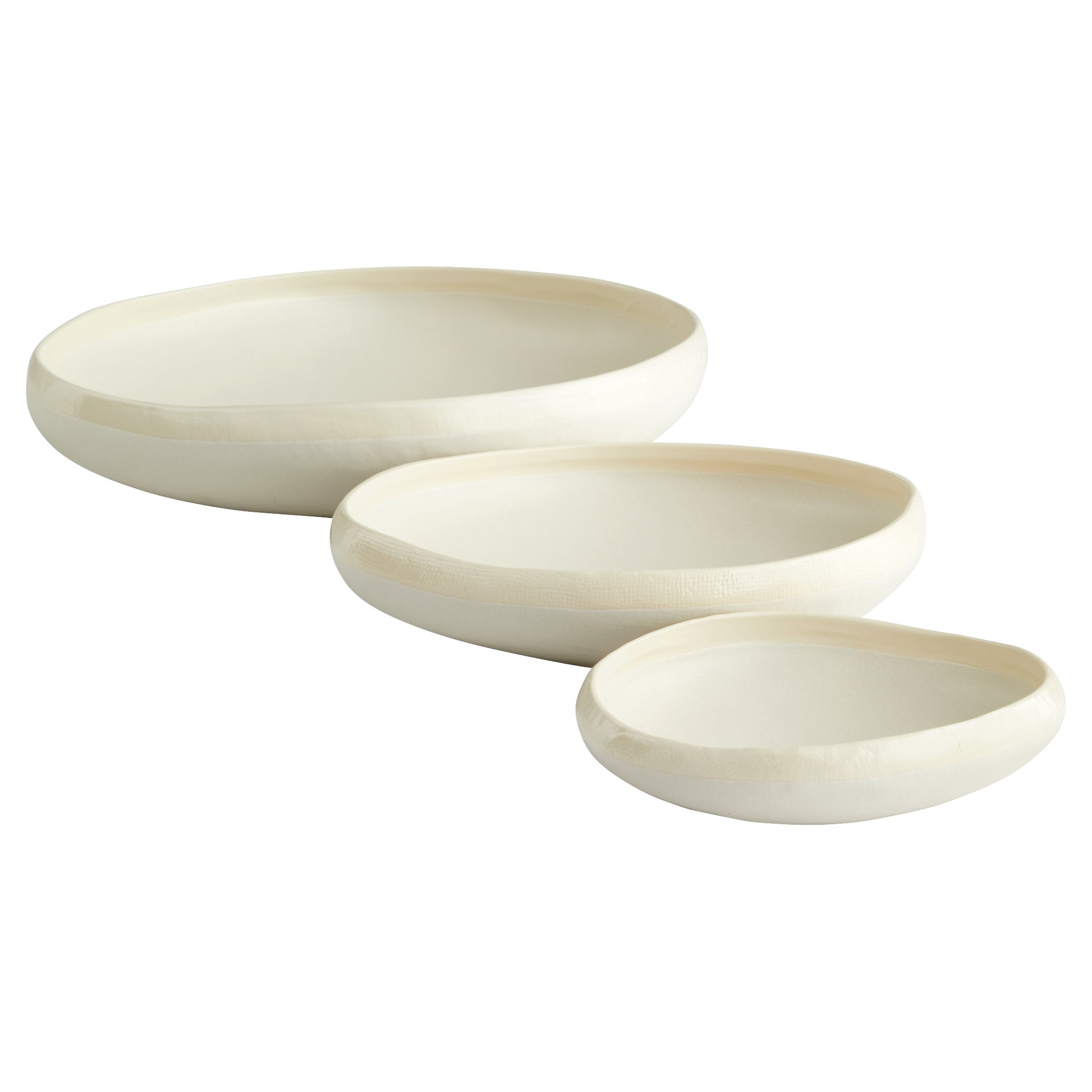 The Elon bowls possess a nostalgic hand-crafted quality through their flat, irregular form. Accessorize with this modest, neutral bowl perfect for accessorizing tabletops, bookshelves, and desks.