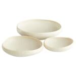 The Elon bowls possess a nostalgic hand-crafted quality through their flat, irregular form. Accessorize with this modest, neutral bowl perfect for accessorizing tabletops, bookshelves, and desks.