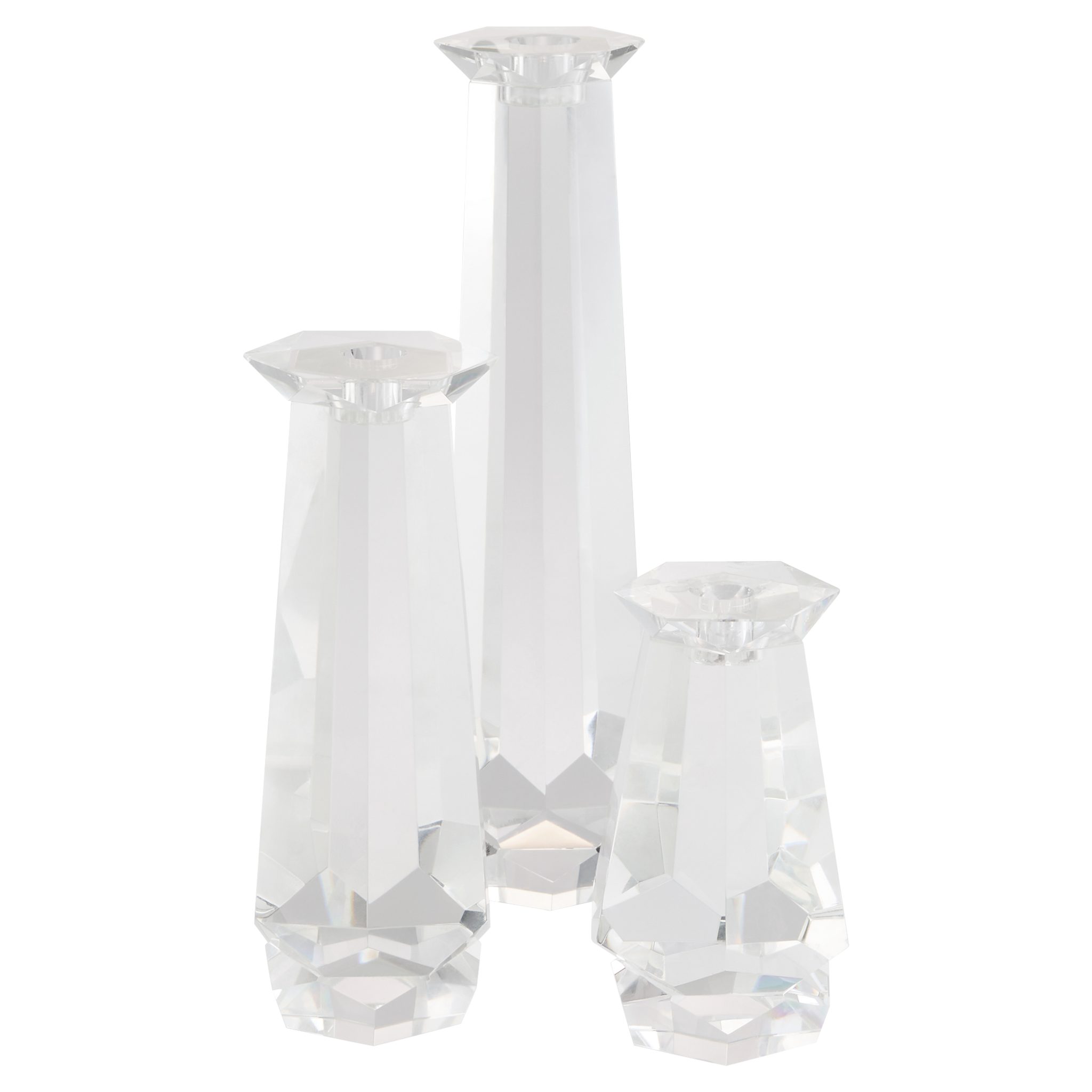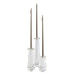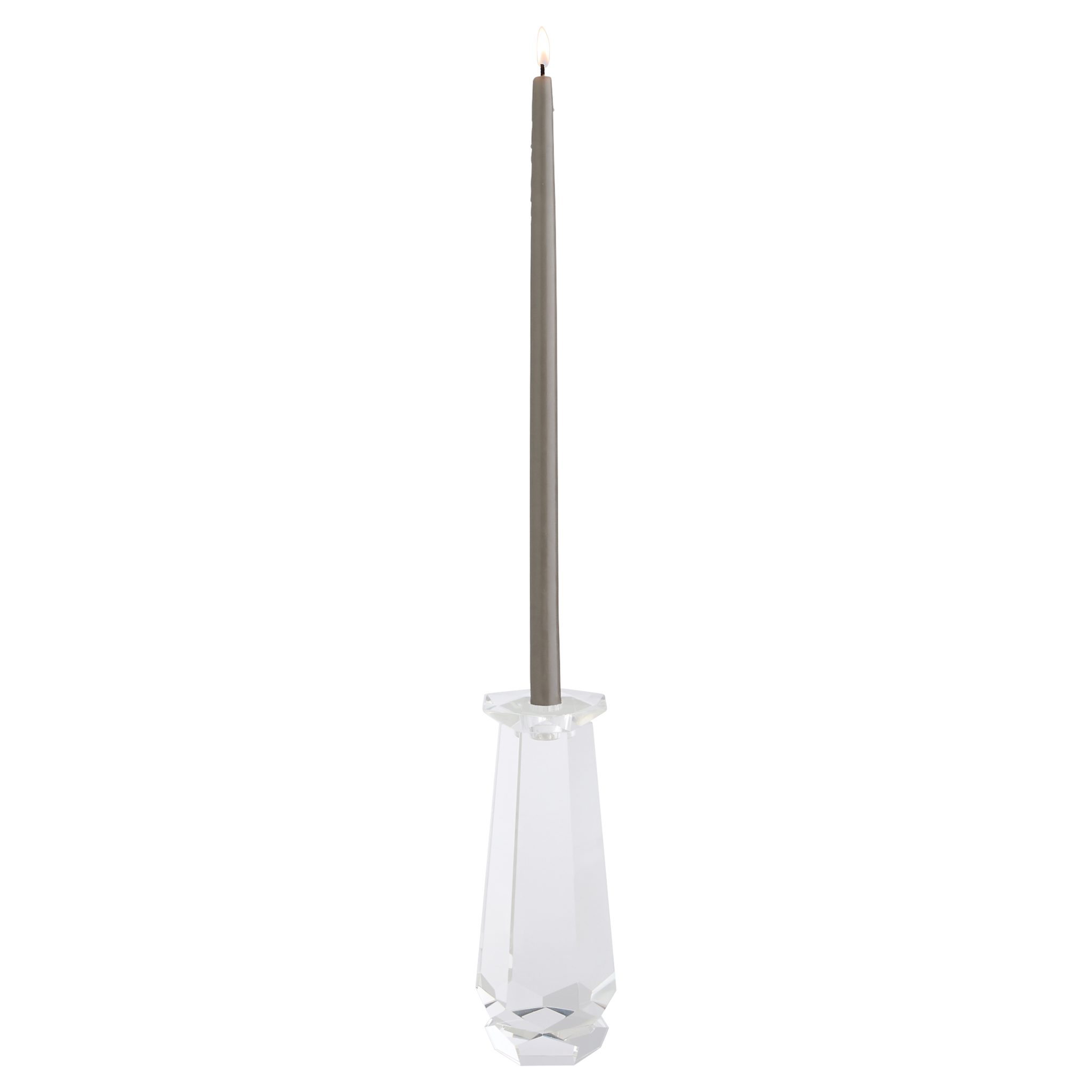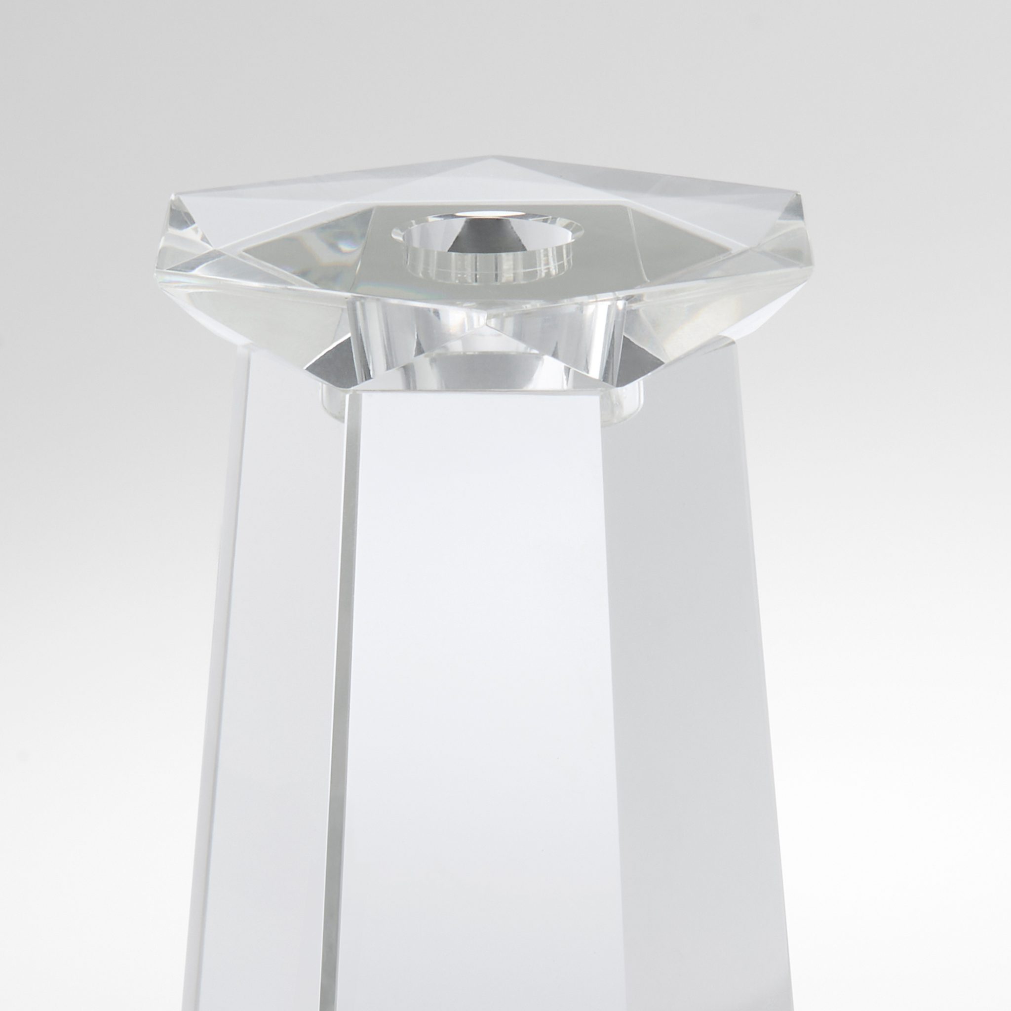 The Faceted Taper Candleholders feature modern crystal with a bold scale and precise clarity. Its versatile design transitions effortlessly from formal to relaxed settings. Available in various shapes and sizes, it can be paired together for a bold presence or stand alone as an eye-catching accent.