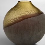 The Geode Vases contrast shimmering gold iridescence with sandblasted black cased glass, creating a dynamic interplay of texture and light. A bold diagonal divide enhances the striking contrast, making each piece feel both structured and organic. Display these vases together for added depth and visual interest.