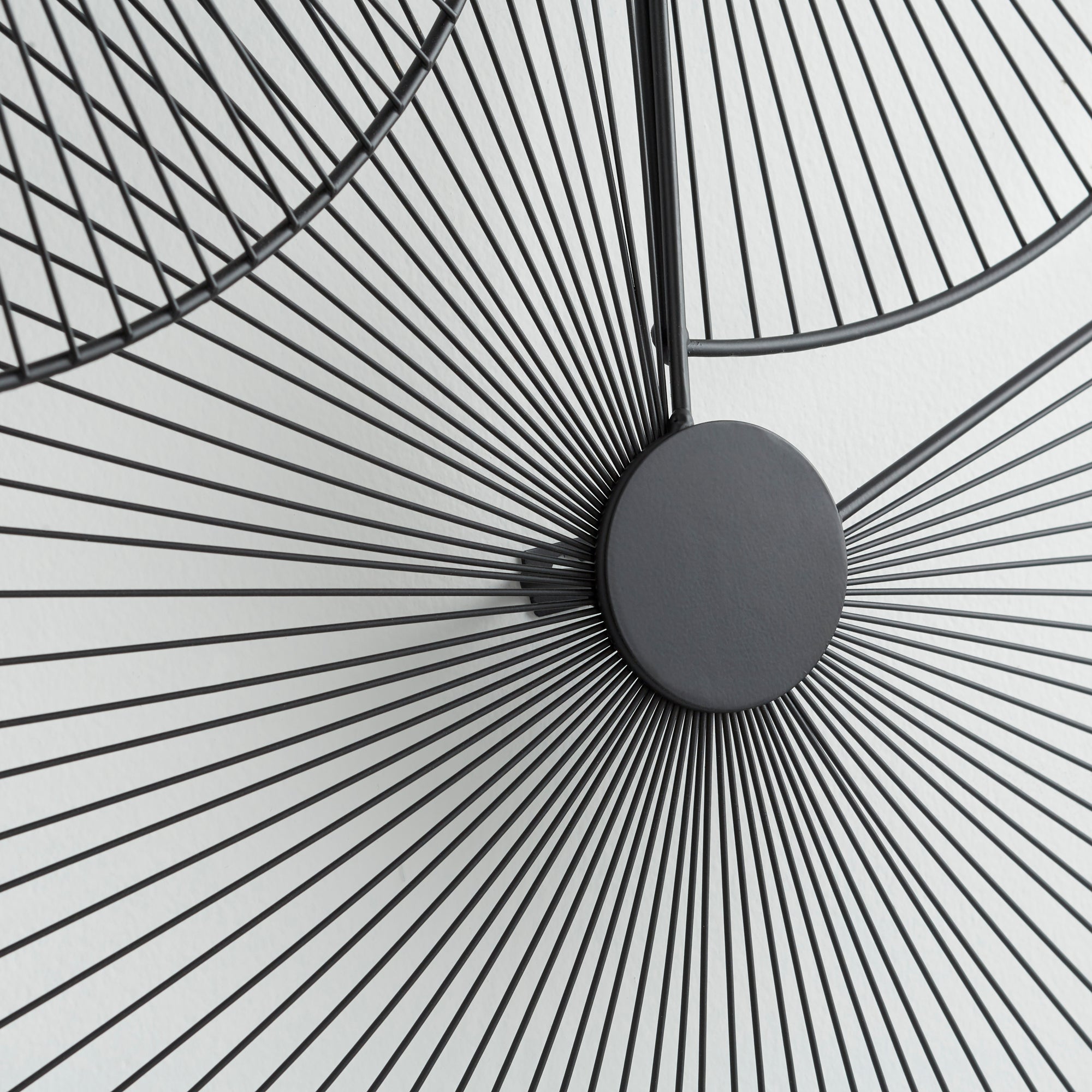 This whimsical wall art piece is an inspired abstract design. Open aired spokes and geometrically centered; the Gnosis wall decor boasts a sleek graphite finish on its minimal look, formed to resemble semi-completed overlapping wheel patterns. This piece is perfect for any modern-design with an artistic theme, minimally inspired ensemble, or commercial application with a transitional twist.