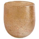 Each piece in the Golden Taffy vase collection is hand-blown, showcasing a luxurious light gold finish that adds depth and distinction with a rich, bubbly texture. The fizzy finish is achieved by applying a reactive glaze on top of the molten glass, making each piece in the collection truly unique. Perfect for adding a touch of warmth and style to any space, these pieces are great as candle holders, casting a soft, ambient glow when lit. Whether displayed as standalone accent pieces or used to hold your favorite candles or flora, these exquisite creations will surely dazzle and delight. Available in two sizes.