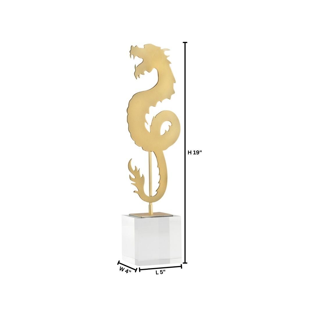 The gold-finished Haku and black-finished Shenron Dragon Sculpture celebrate the rich tradition of Chinoiserie dragons while infusing a modern twist. Crafted from iron sheet, these sculpture symbolize strength, power, and good fortune. The modern twist is seen in their adaptability: they can be used in either a left or right-facing orientation. This feature allows placement customization, adding versatility and a sense of freedom. The year 2024, being the Year of the Dragon, enhances the cultural significance of the Haku and Shenron Dragon Sculpture, aligning the collection with the profound and auspicious symbolism of the dragon in the Chinese zodiac.