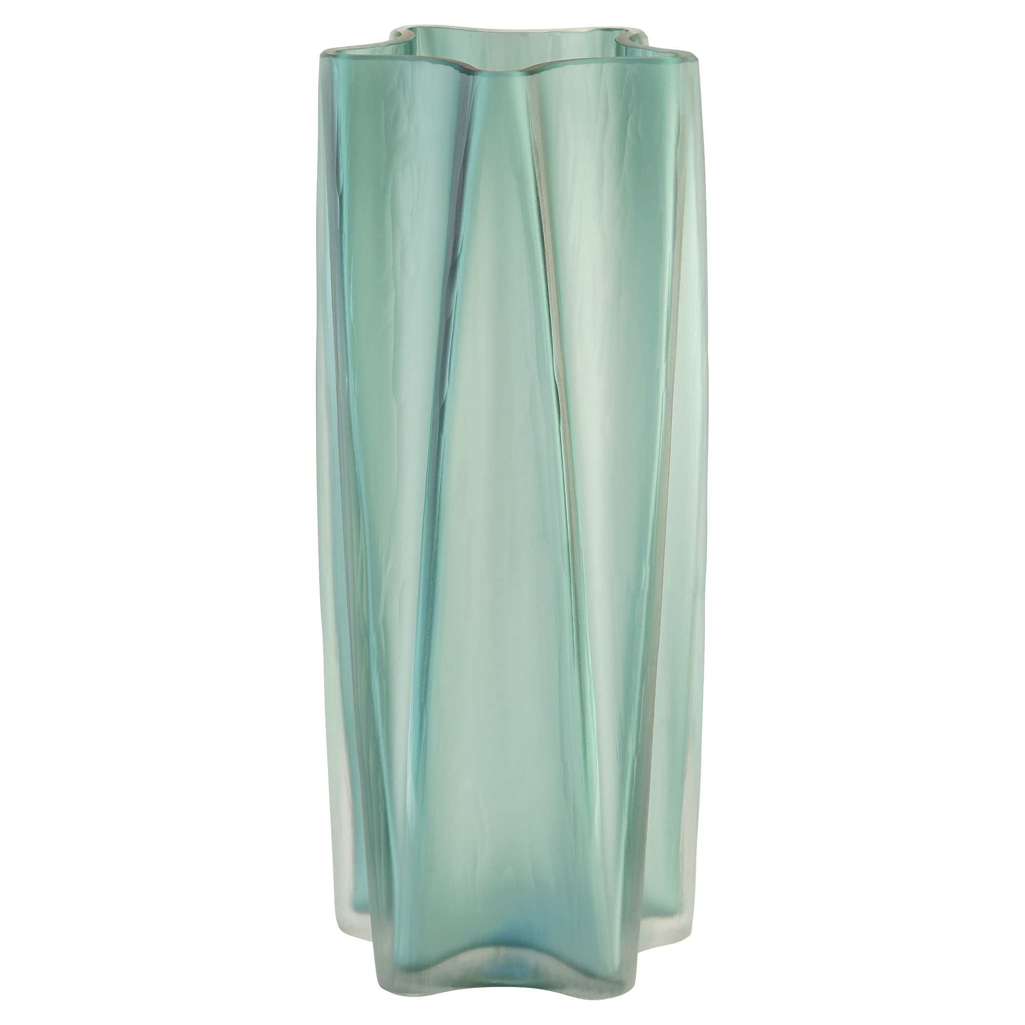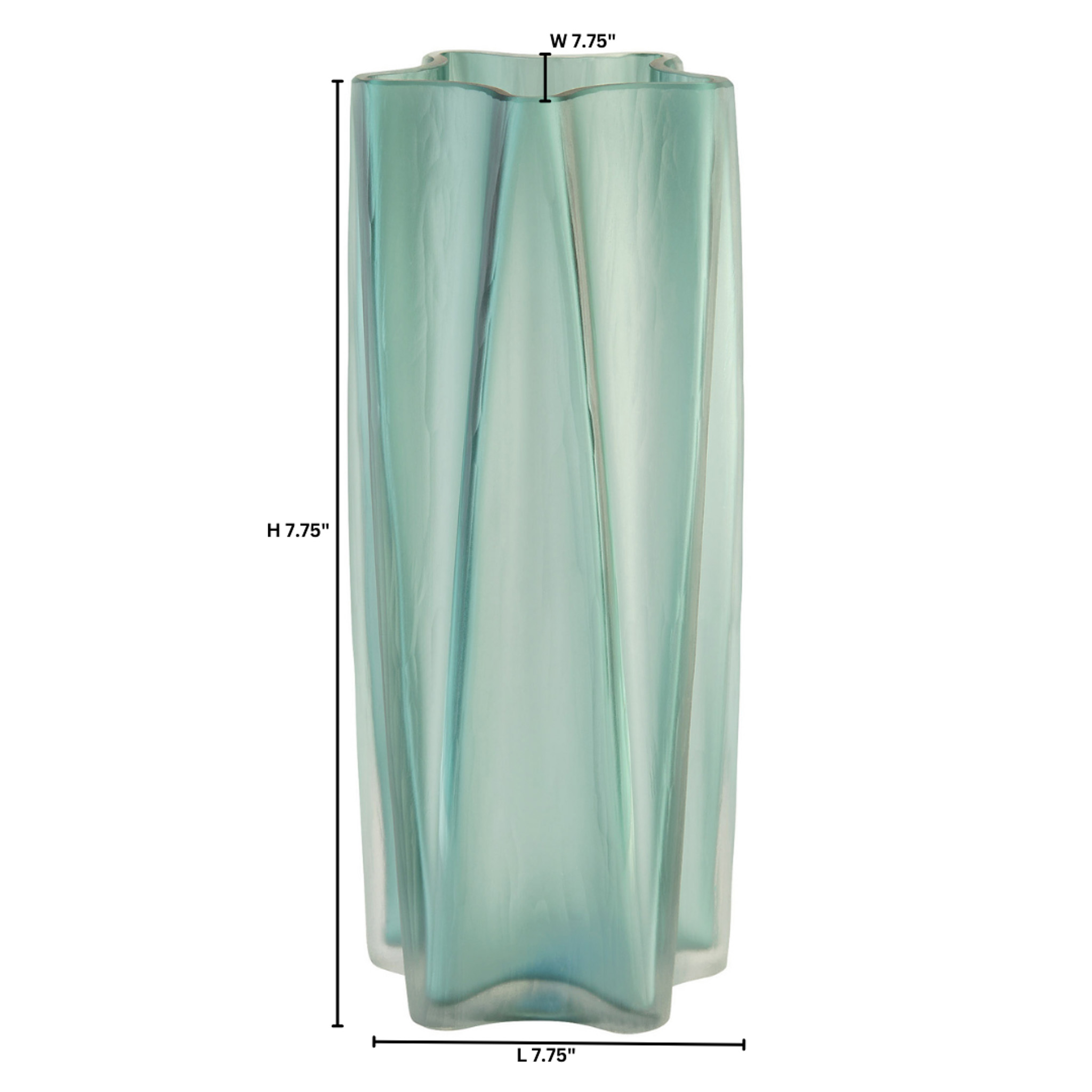 The Hoku Vase, crafted from frosted green glass, is available in three sizes, offering versatile styling options for any decor. Whether displayed individually or grouped, these vases create a dynamic visual touch to your space.