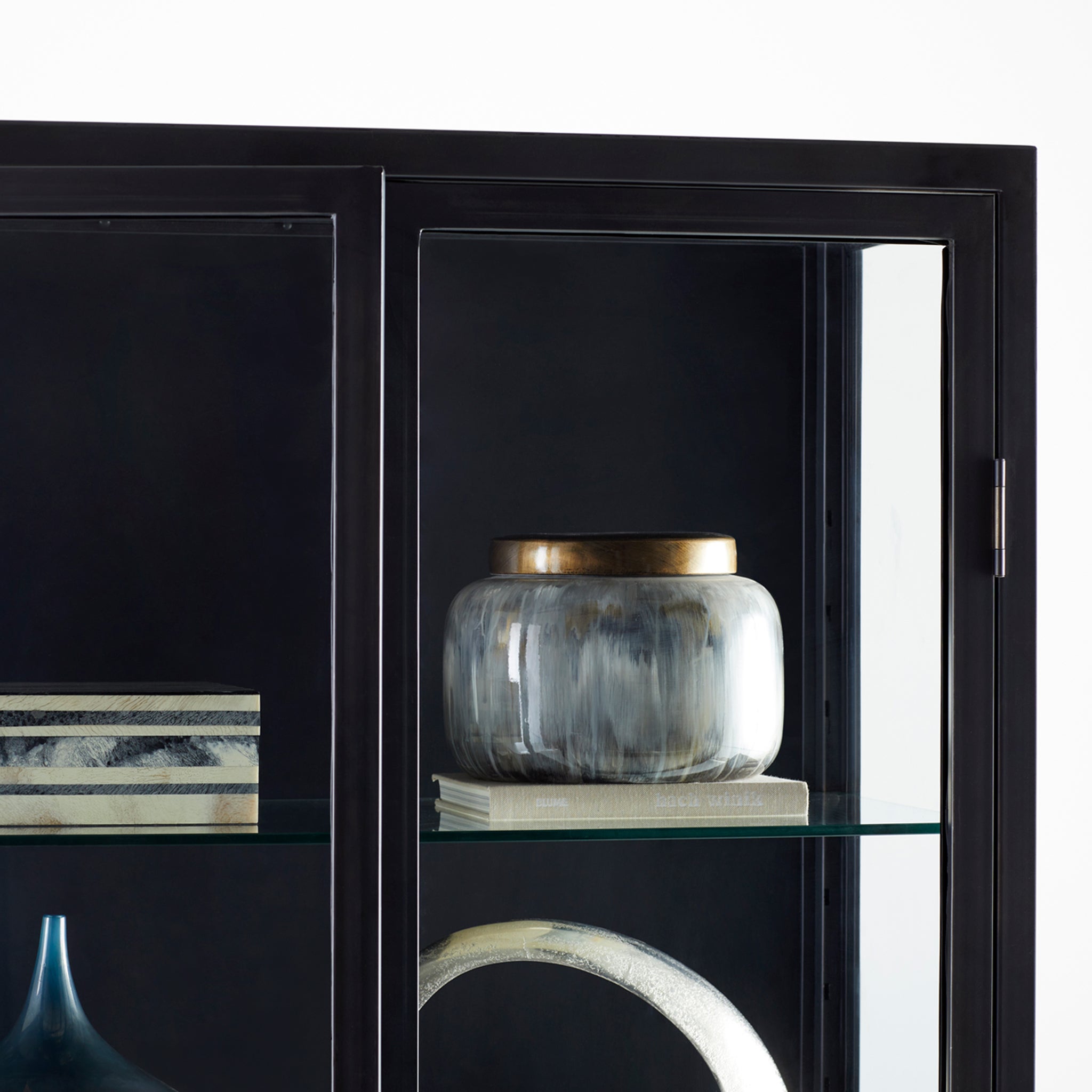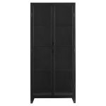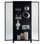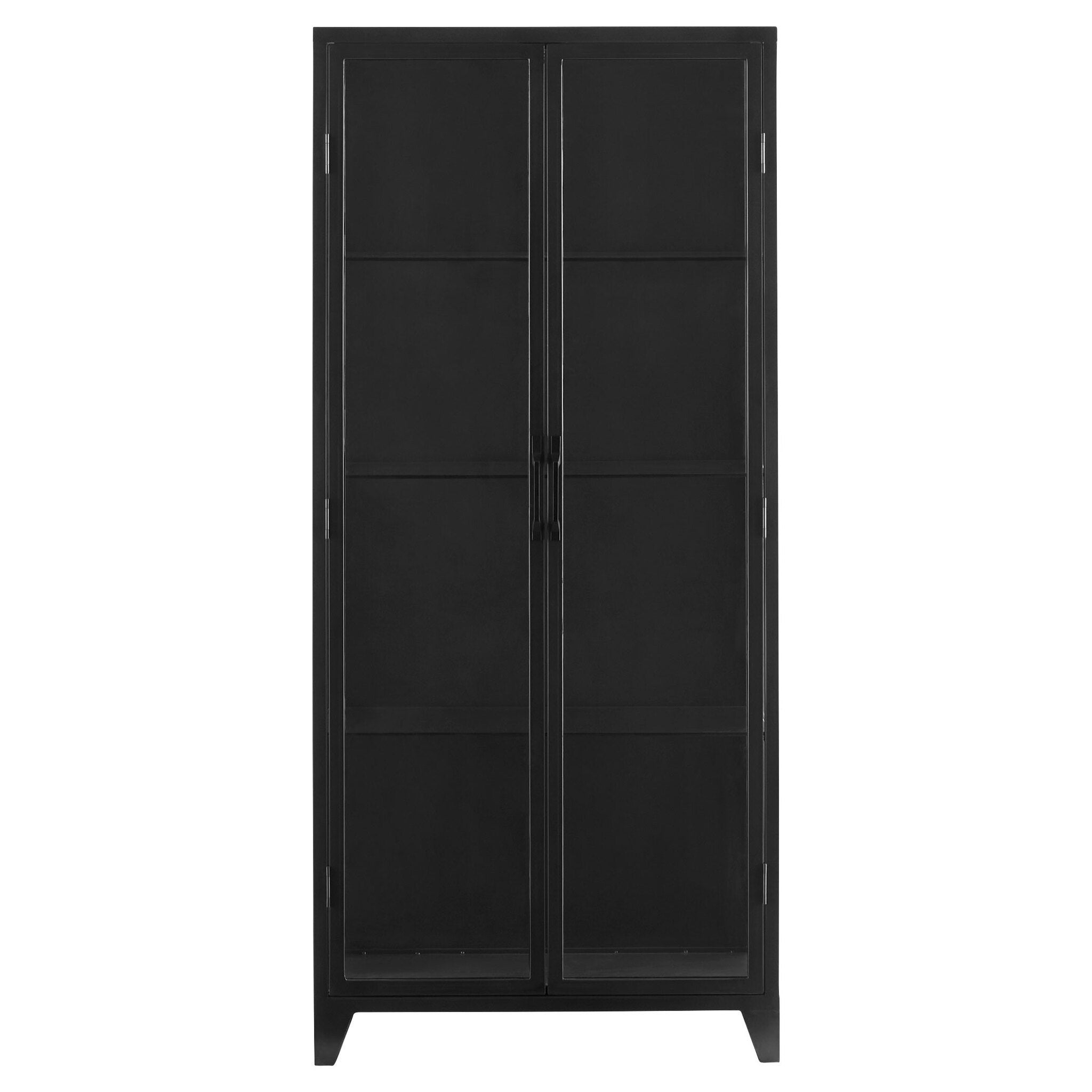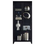 Display fine art sculptures, books, and d?corative objects in this straightforward cabinet made with a solid steel frame and clear glass doors. The Hosta cabinet is available in black, granting it the capability of occupying any commercial or residential space as a support to the surrounding decor.