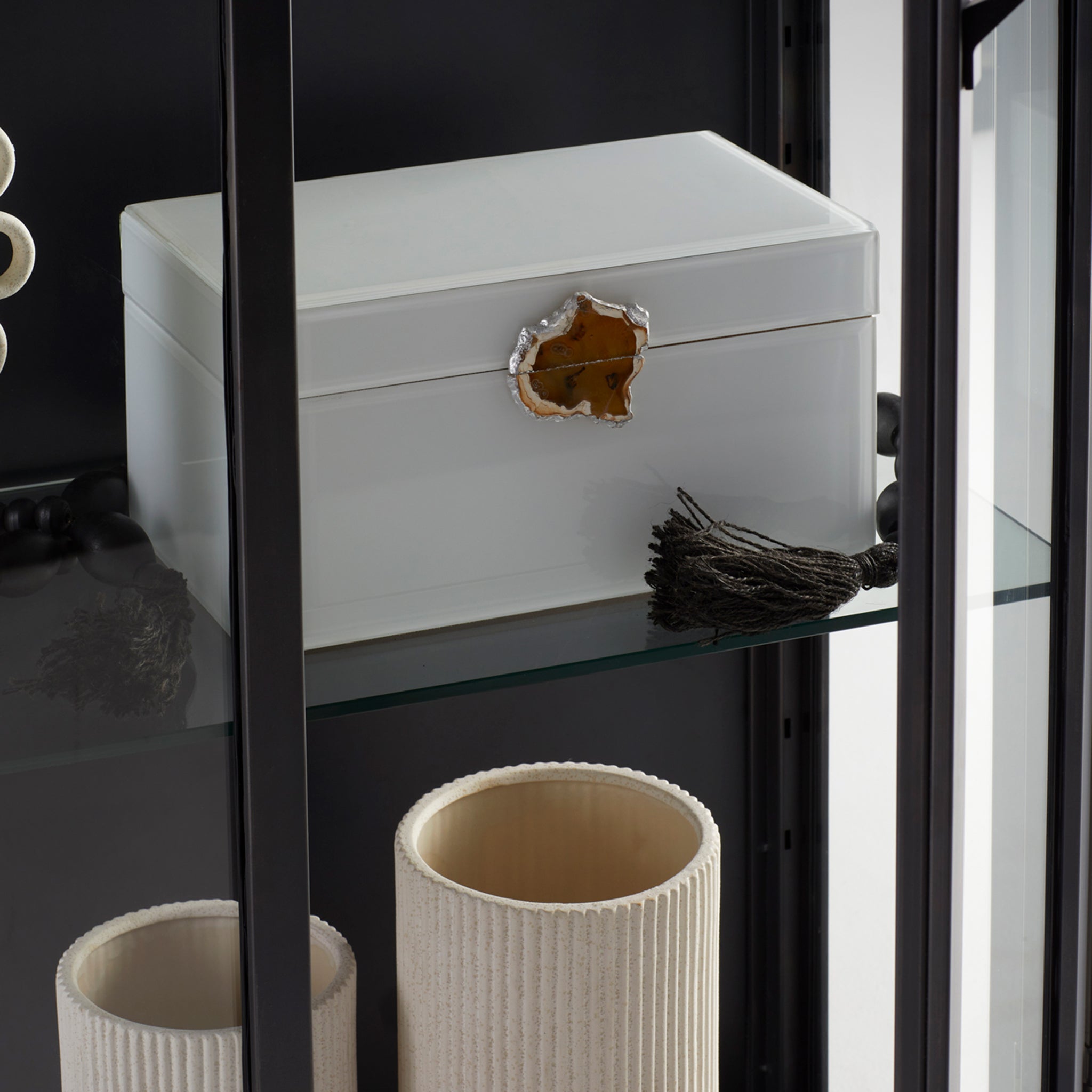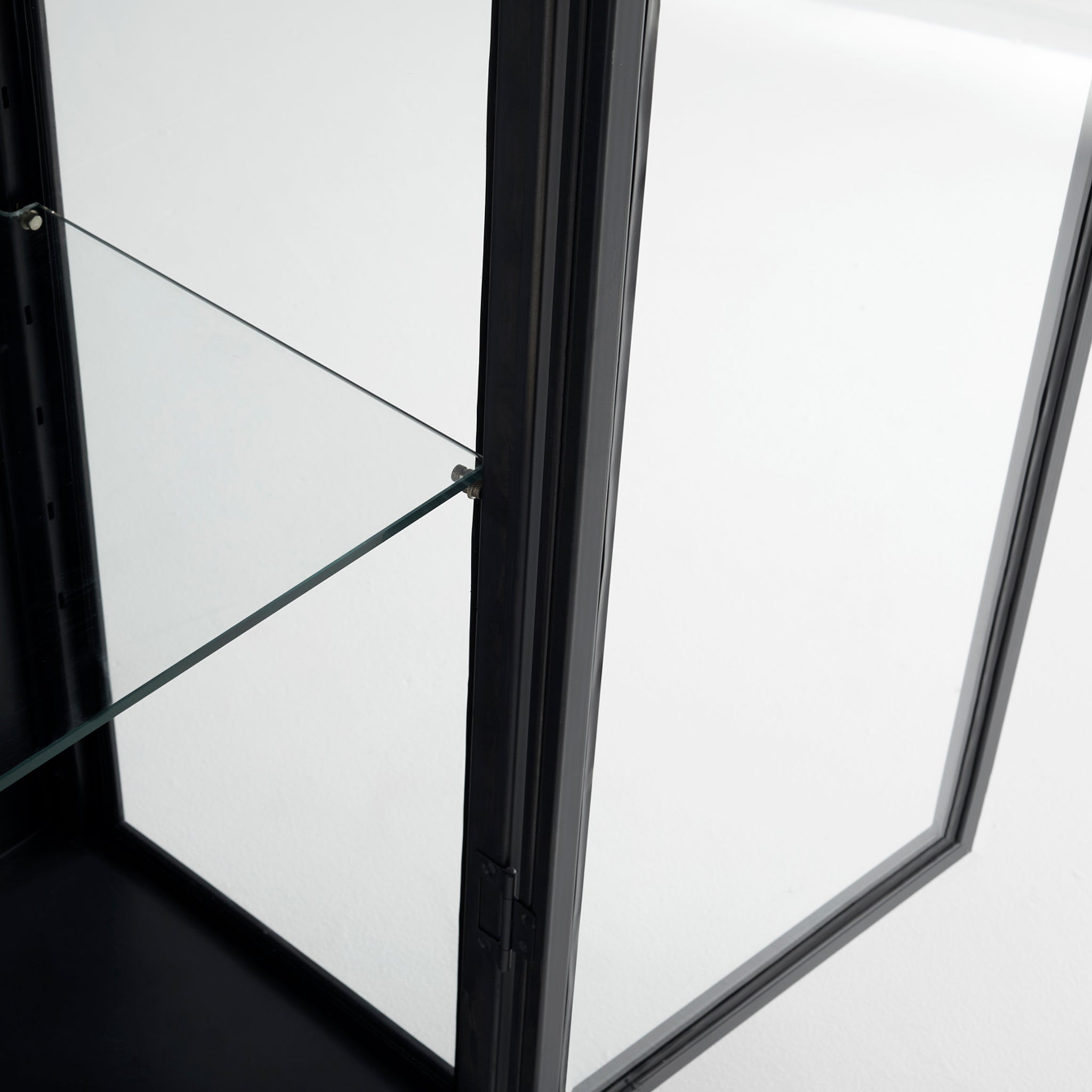 - Metal Vitrine | Cold rolled steel | Glass walls | Adjustable Glass Shelves