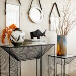 This cylindrical vase is an ode to a mid-autumn sunset, sporting a stunning silhouette of a barren tree, contrasted with an evocative evening sky. The blue and amber glass forms into a nicely scaled tabletop accent, perfect for any modern inspired styling or vibrant bohemian leaning ensemble. Place this impervious vase with fresh cut flowers near a window for a radiantly mesmerizing effect.
