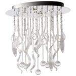 Add intrigue to a favorite nook with the striking Mirabelle 4-light chrome pendant. Strands of clear glass beads and mesmerizing textured accents are suspended from a circular canopy with four lights, creating a brilliant display of reflection and refraction.