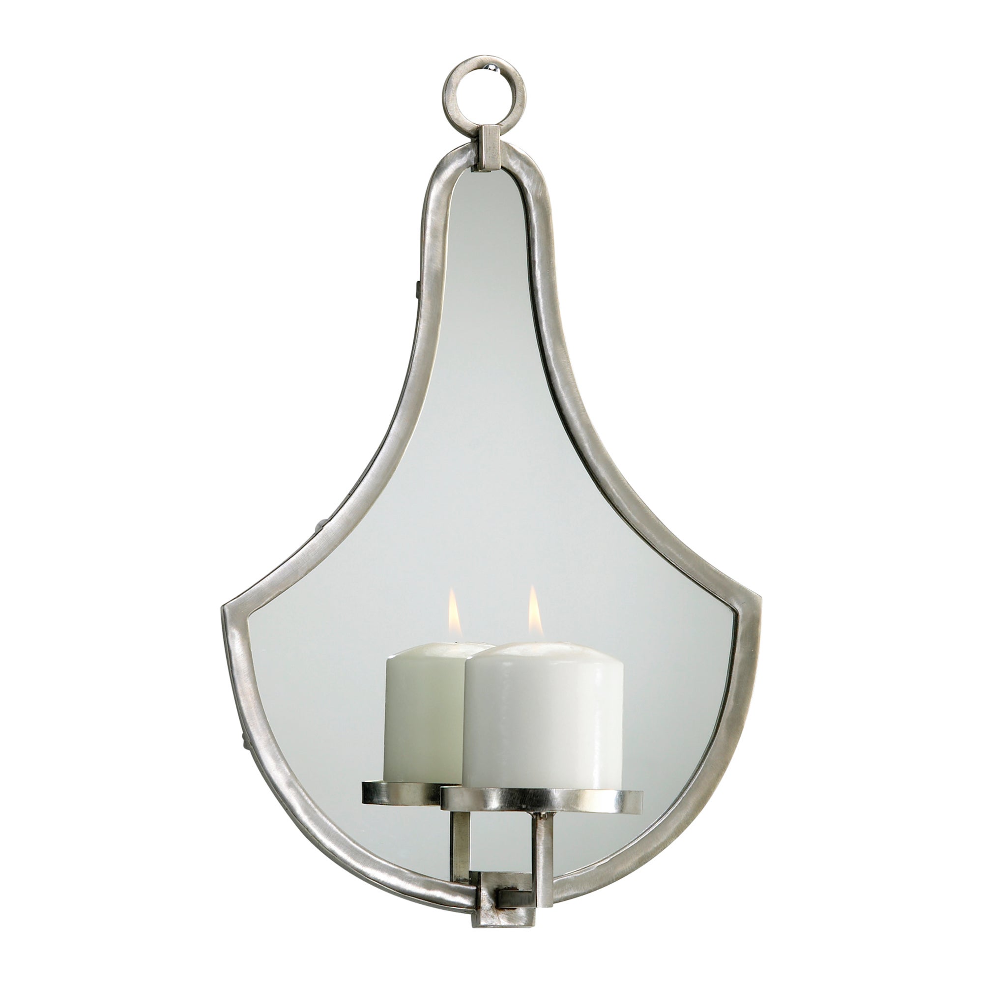 “Expand and reflect with the mirrored details on this satin nickel wall candleholder. Clean, vintage-inspired curves are perfect for any hallway or bathroom.”