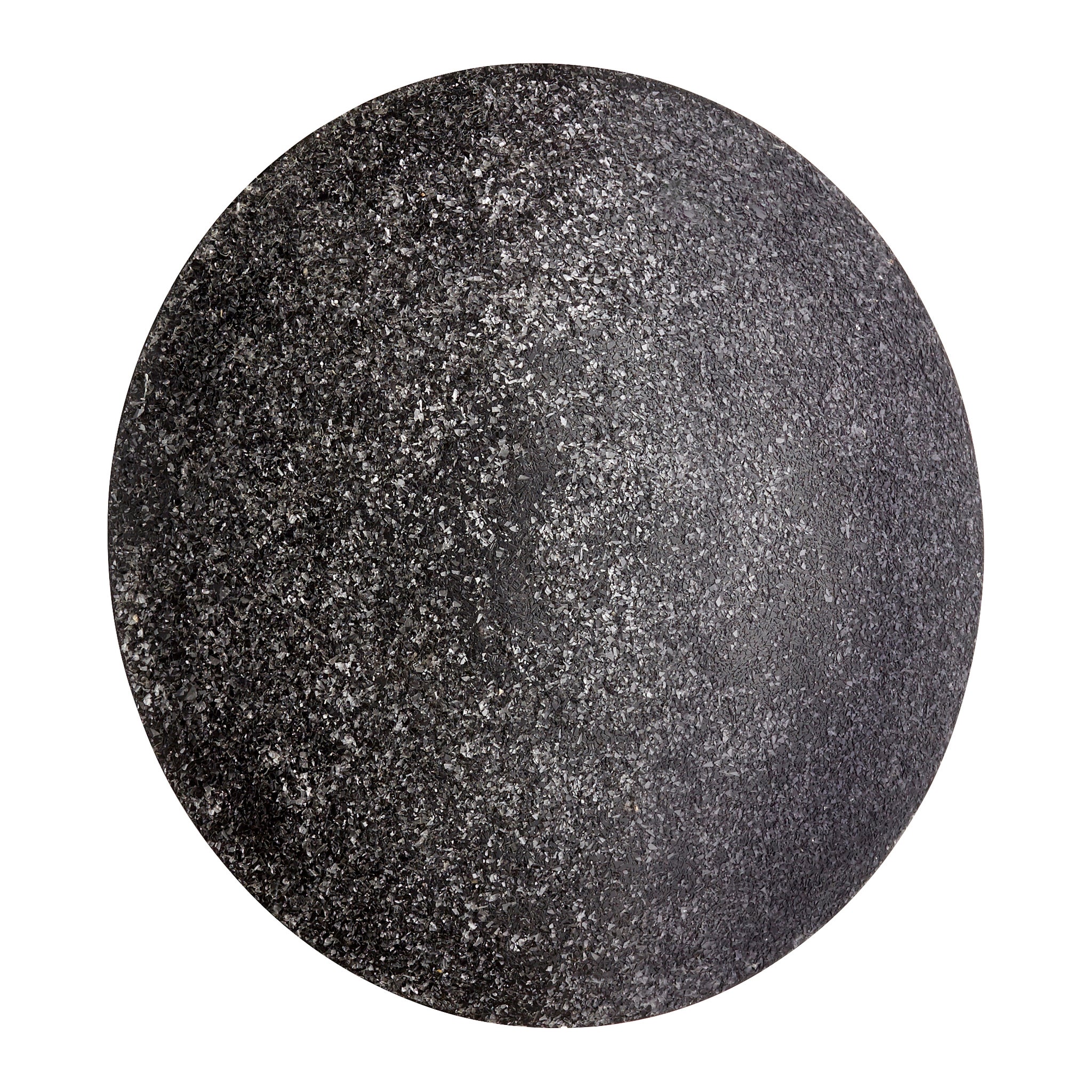 This is a circular structure that features many fine details and texture. Its speckled coating gives slight pops of light to the dark surface.