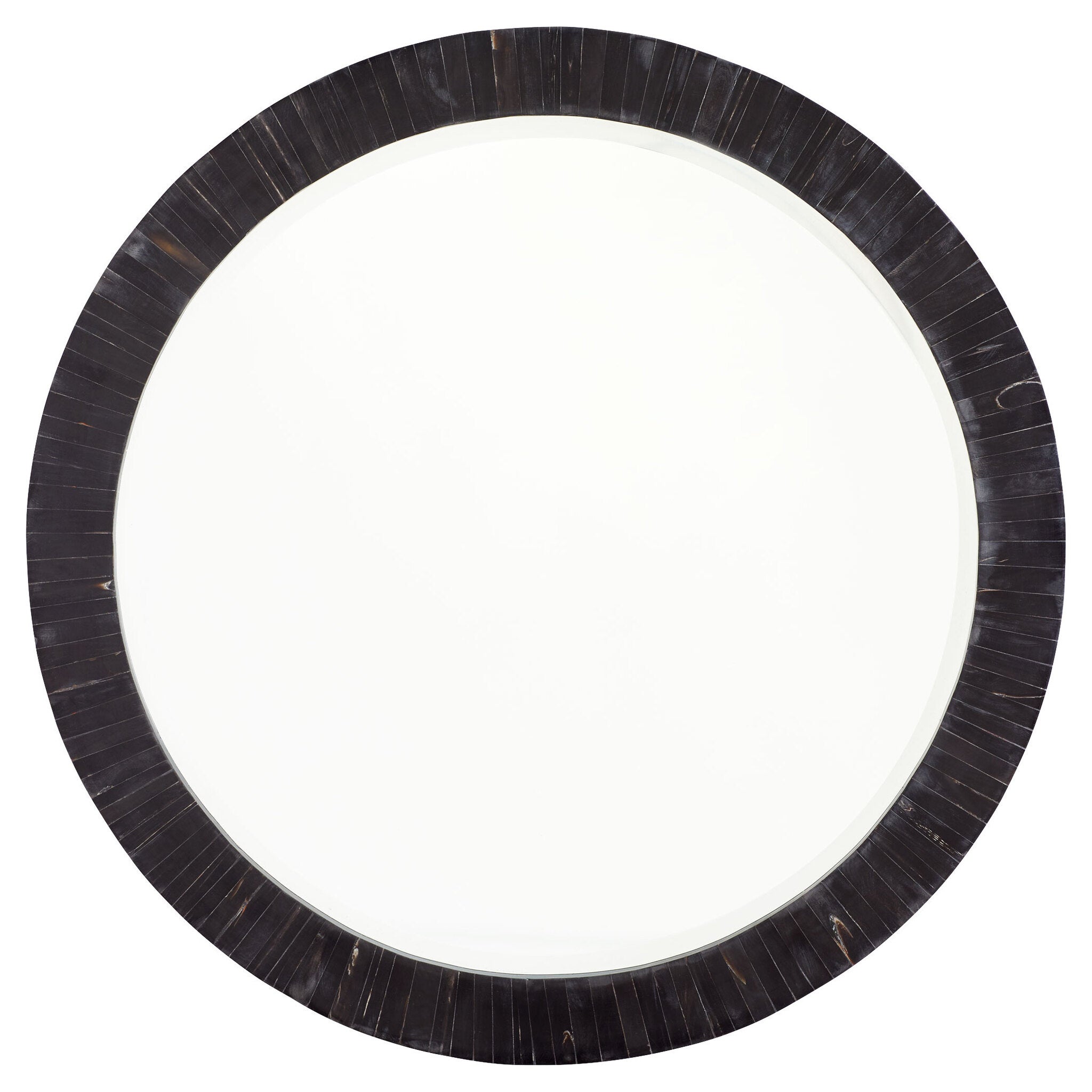 Natural horn tiles are lined along crisp, mirrored glass in the Nautilus series. Organic elements and manufactured materials provide balance with varying tones and textures. Hang this round mirror in a washroom, home office, or foyer for an added detail of refined natural material. Also available in natural bone that is dyed grey.