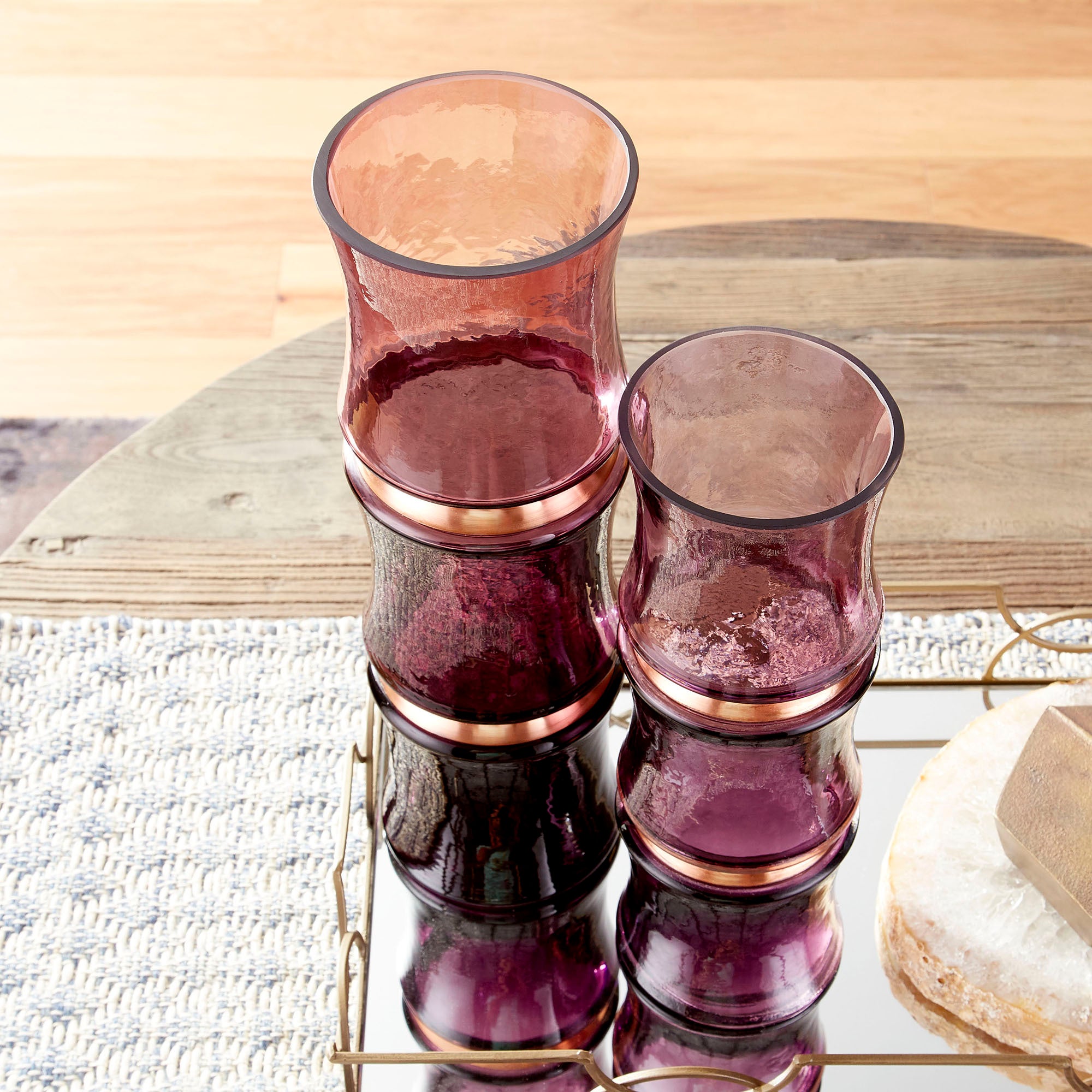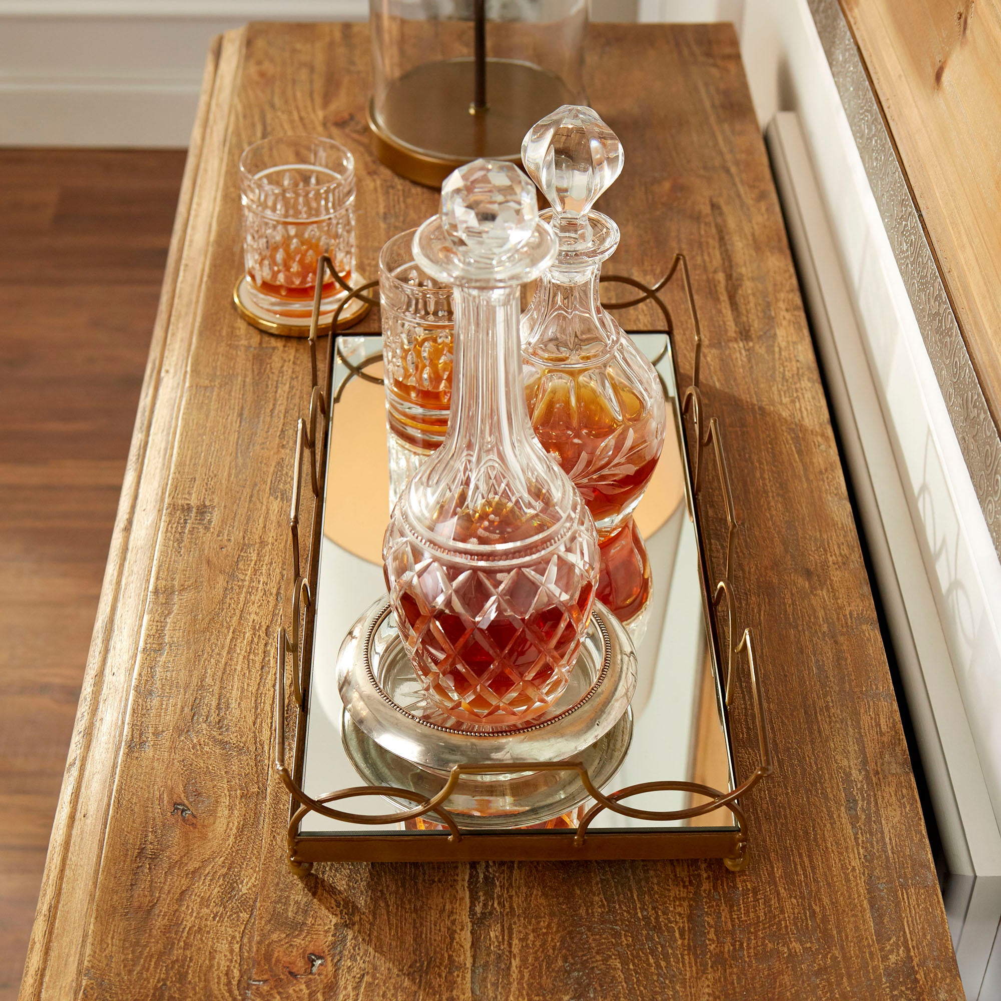 Upgrade any bedroom dresser or bathroom vanity with these art deco-inspired gold trays. Geometric shapes and mirrored glass heighten modern spaces.