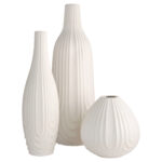 The Nigel Vase, crafted from earthenware, features a sleek white finish that complements any d?cor. Its debossed texture adds a subtle but striking visual element. Available in multiple size and shape options, it works perfectly as a standalone piece or grouped for a layered effect, adding modern elegance to any room.