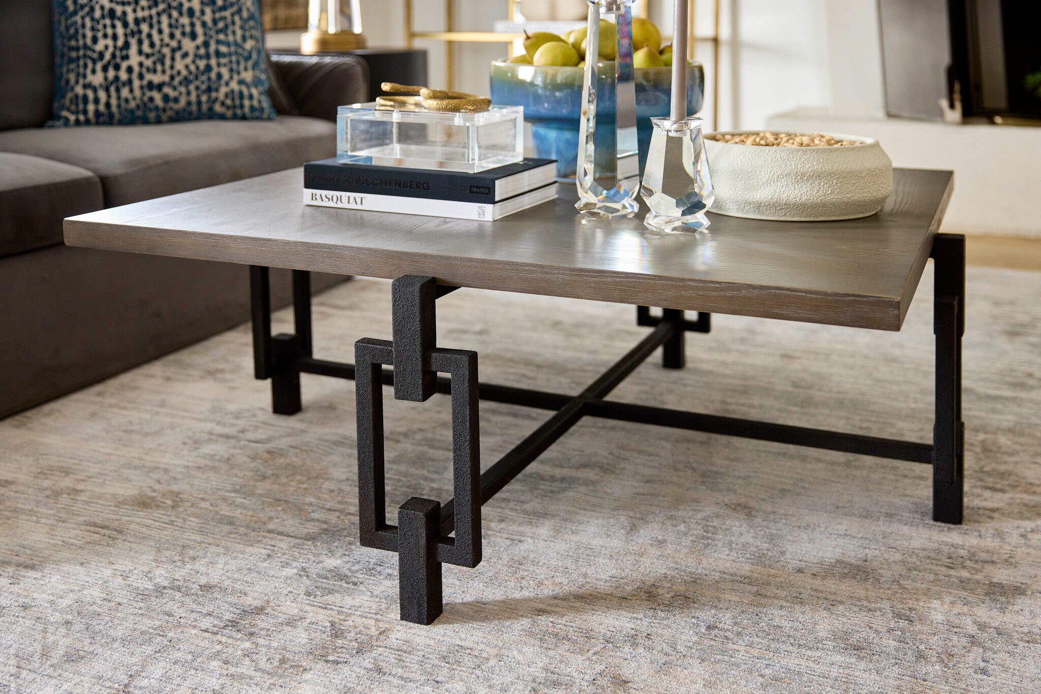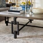 Designed for Cyan Design by J. Kent Martin. The Ogden coffee table is the ideal industrial accent. This unassuming centerpiece sports a Noir finish on its chain-link inspired base, paired with a solid oak surface top. Perfect for any loft-style design or open floor commercial project, the Ogden table is sure to anchor your space’s look.