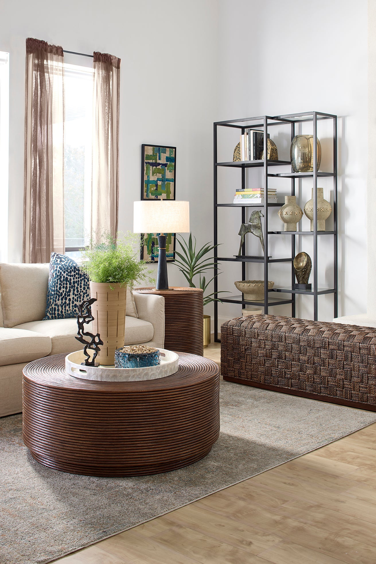 - Hand-Coiled Rattan Wrapped Cocktail Table | Plinthe Base
