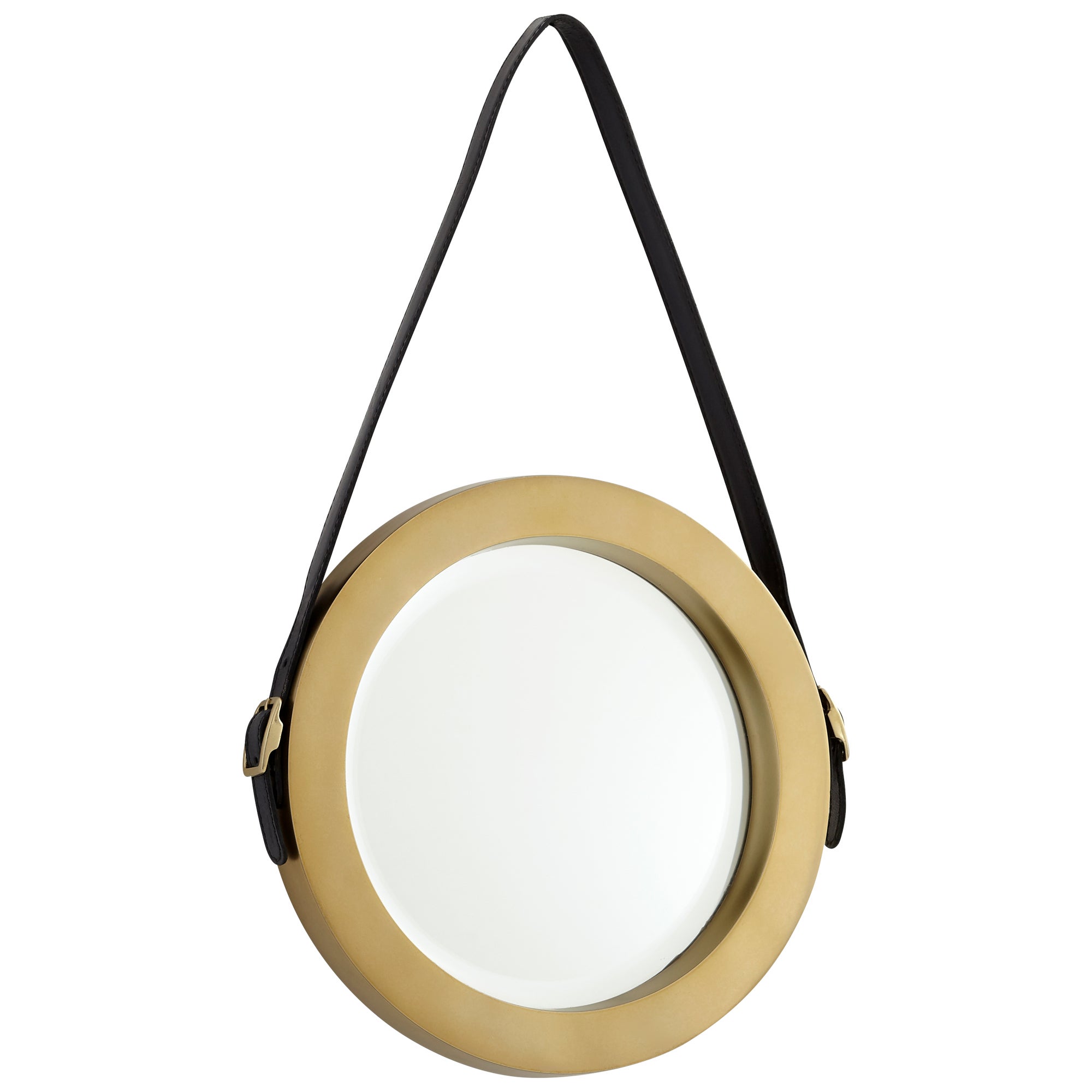 “Looking for an upgrade on your wall d?cor? The Round Venster accent mirror offers useful reflection, and can help make your space feel larger, while adding a d?corative touch to your room’s aesthetic. This geometrically inspired, circular mirror features a metal frame and glossy glass surface, and is a great option for any room looking for a clean minimal touch. Hung on an ADJUSTABLE leather strap from the accompanied hardware, it also delivers warm-metal appeal with its Antique Brass finish for an en vogue touch, perfect for varying vibes and ensembles.”