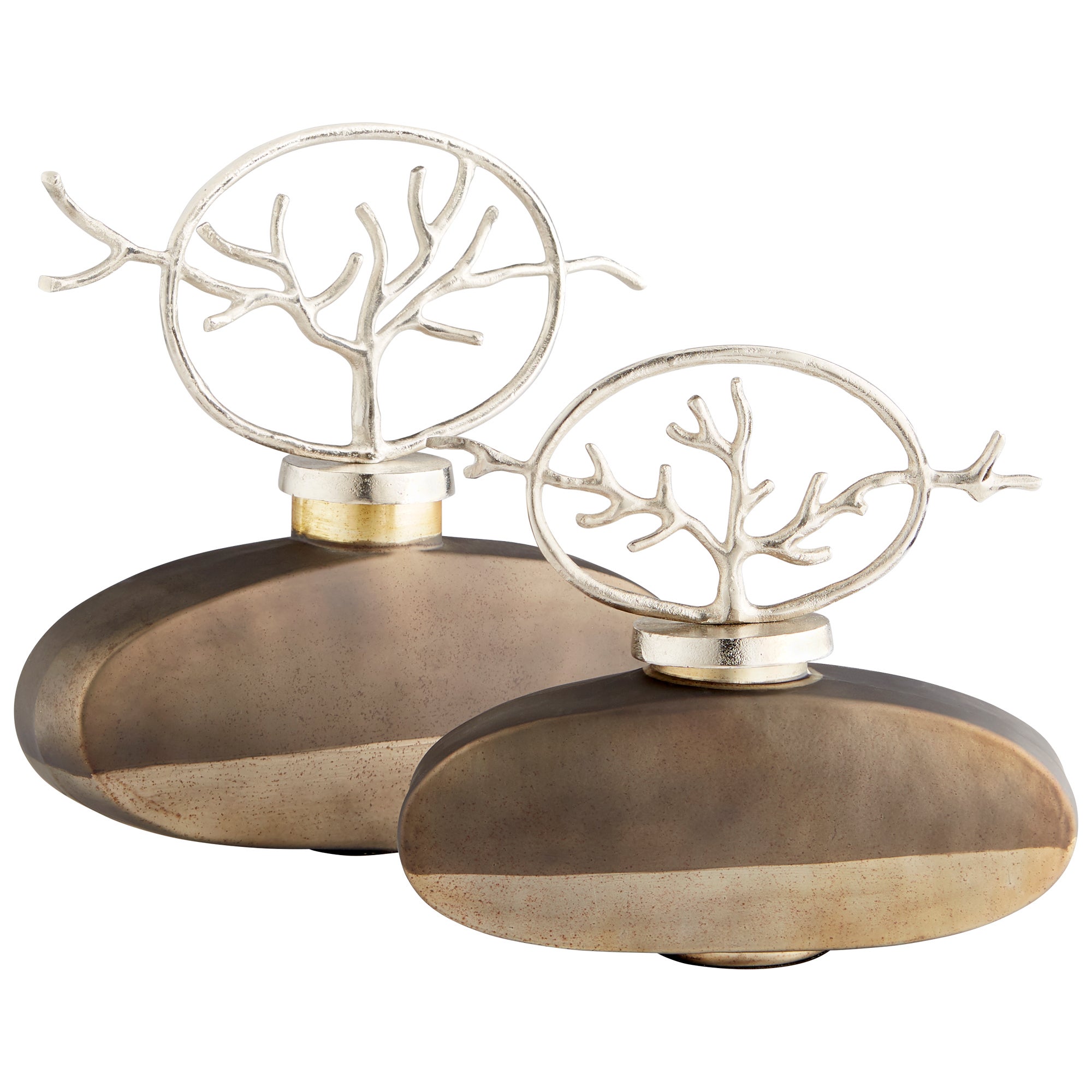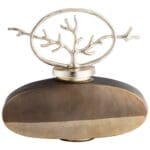 Sporting a smoky quartz and nickel finish, this decorative sculpture is high art in an unassuming form. Resembling an urn with an accented abstract lid, the appeal in this accessory is in its outdoor influence, thanks to the framed out metallic branch. Whether placed in an entryway or living room, the Round View Leaf sculpture is sure to give your space a modern-organic appeal.