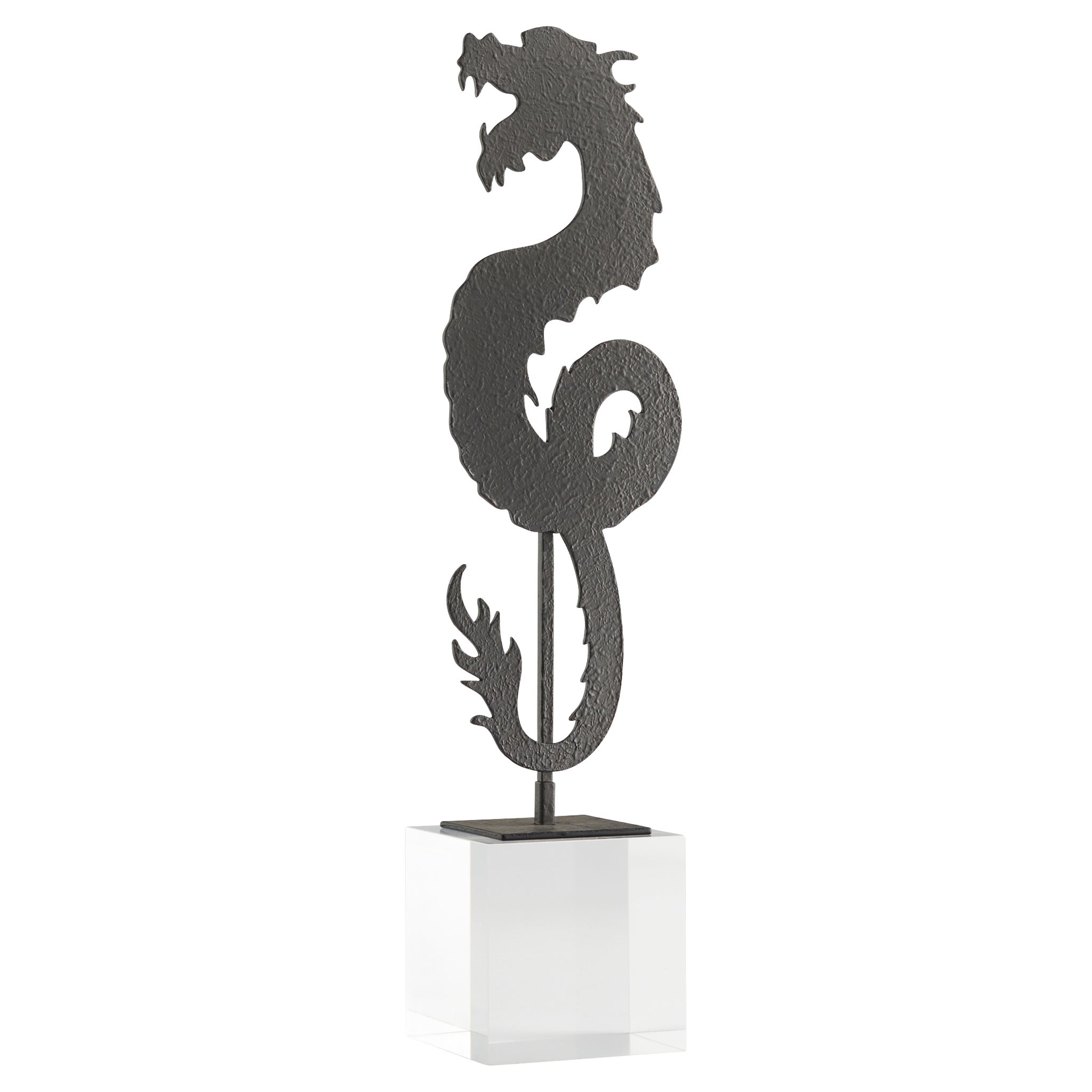 The gold-finished Haku and black-finished Shenron Dragon Sculpture celebrate the rich tradition of Chinoiserie dragons while infusing a modern twist. Crafted from iron sheet, these sculpture symbolize strength, power, and good fortune. The modern twist is seen in their adaptability: they can be used in either a left or right-facing orientation. This feature allows placement customization, adding versatility and a sense of freedom. The year 2024, being the Year of the Dragon, enhances the cultural significance of the Haku and Shenron Dragon Sculpture, aligning the collection with the profound and auspicious symbolism of the dragon in the Chinese zodiac.