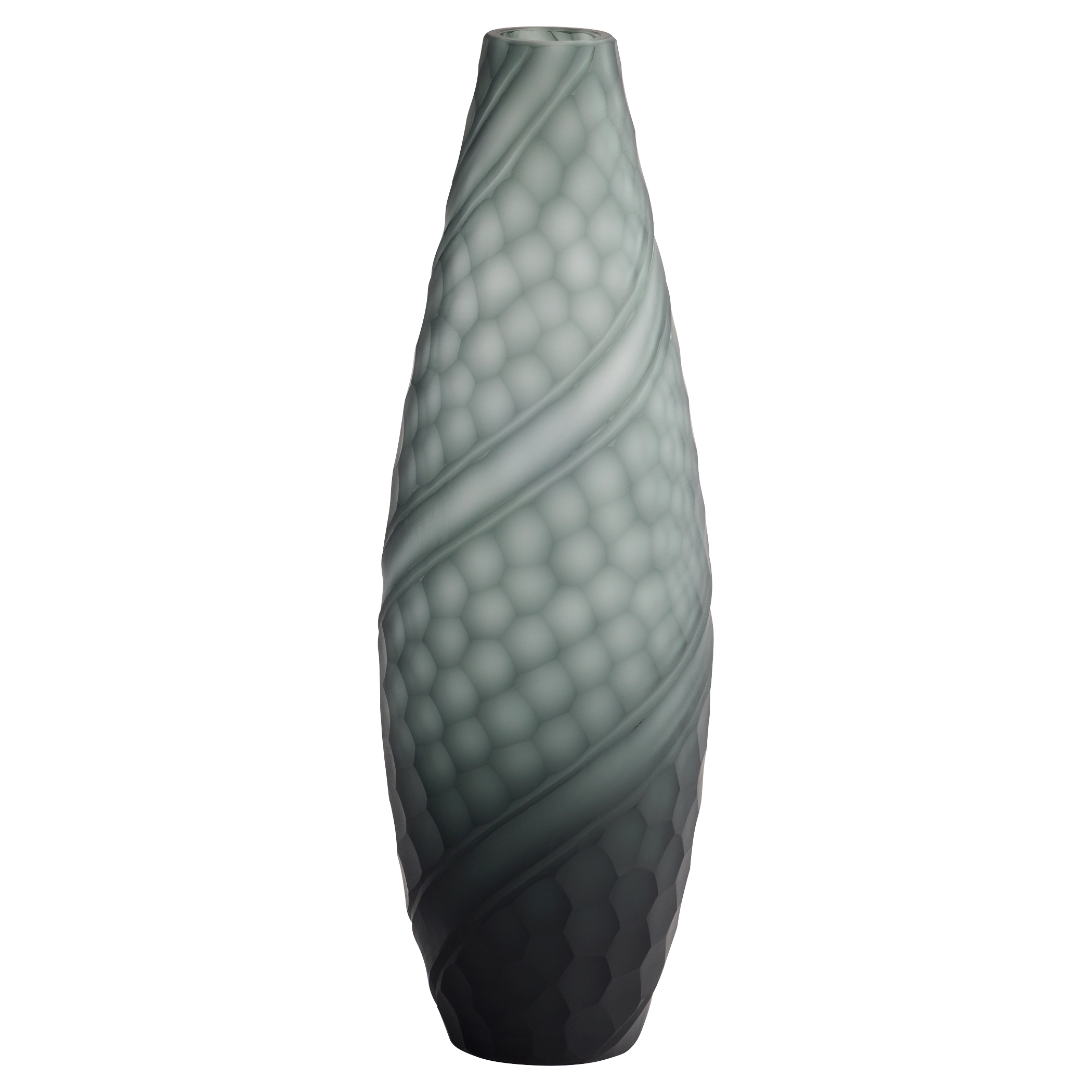 Crafted from cased glass, the Solano vases feature hand-carved detailing that adds texture and depth to the fluid design. The complementary blue and grey tones allow the slim-profile vases to be paired separately or together. Each vase is truly one-of-a-kind, with distinct variations subtly enhancing its unique character. Available in three separate sizes.