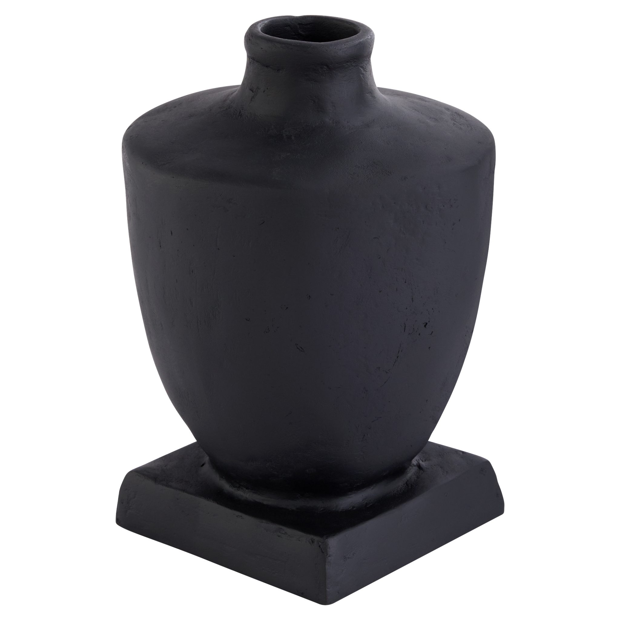 The Sparta Vases blends modern design with ancient influences, featuring a monochromatic Mediterranean aesthetic. Made from sustainable black eco-mix, it showcases textured surfaces, large scale, and bold form. Available in various shapes and sizes, it is perfect for individual use or creating a cohesive look.