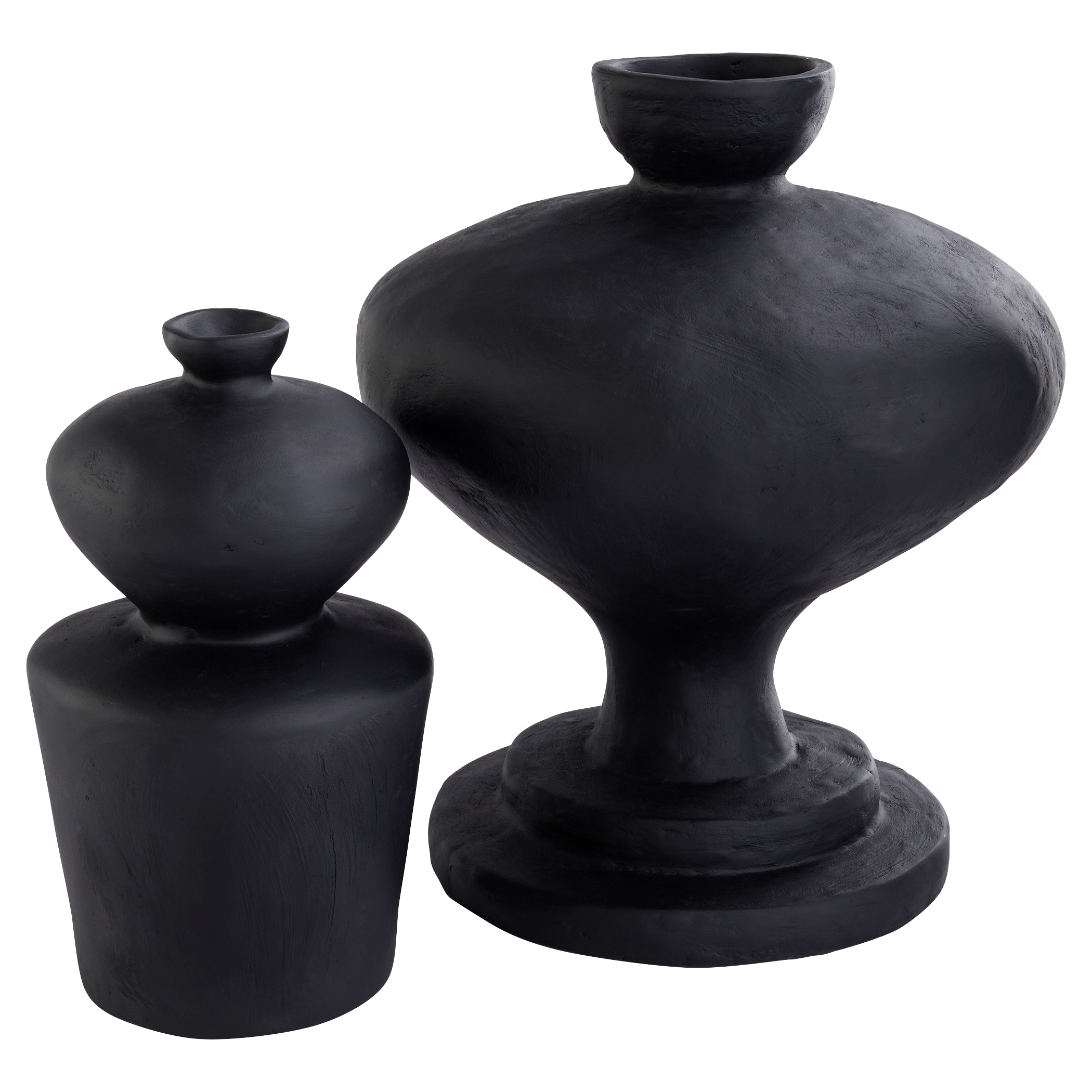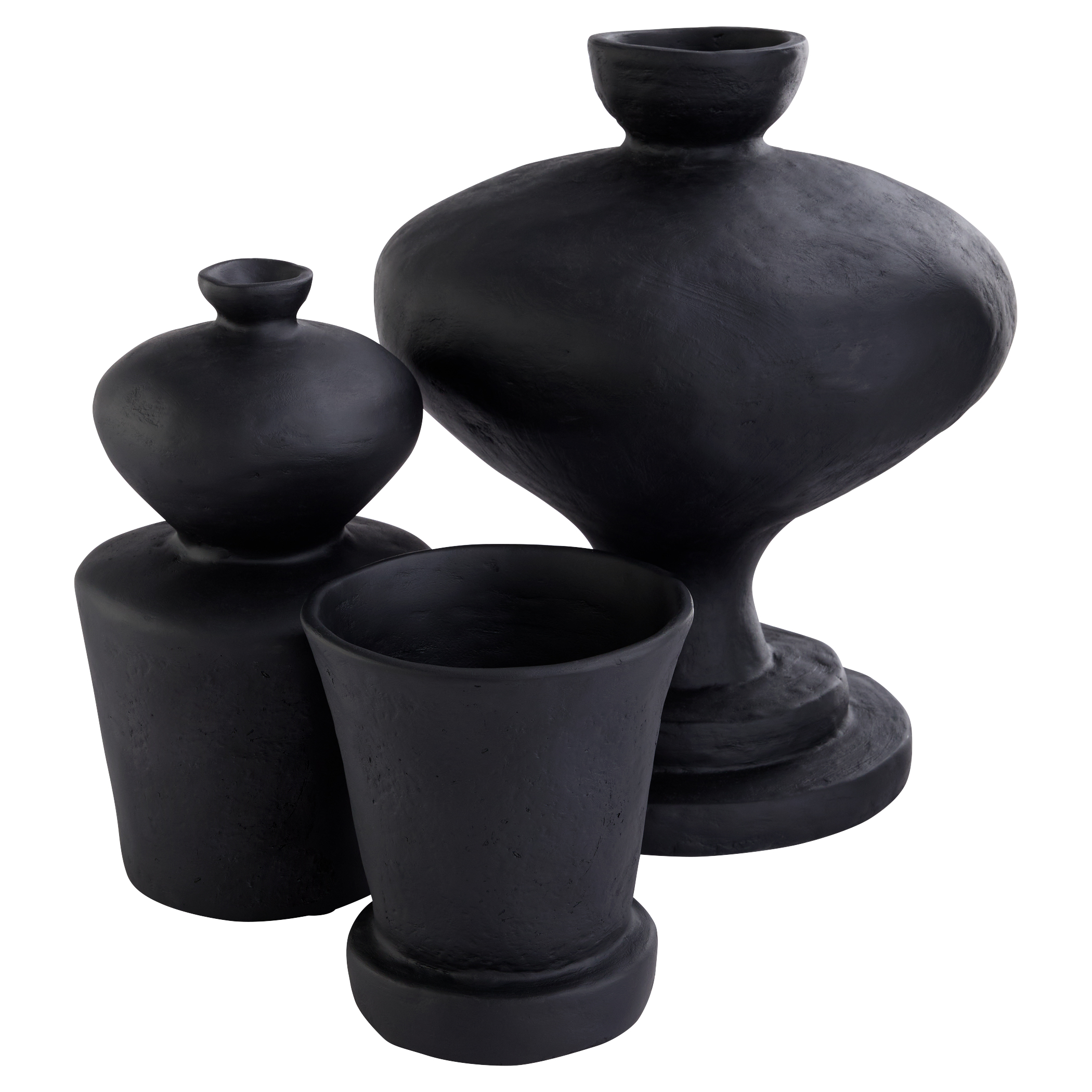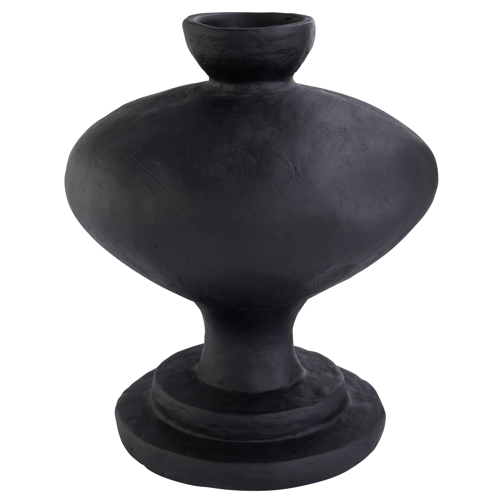 The Sparta Vases blends modern design with ancient influences, featuring a monochromatic Mediterranean aesthetic. Made from sustainable black eco-mix, it showcases textured surfaces, large scale, and bold form. Available in various shapes and sizes, it is perfect for individual use or creating a cohesive look.