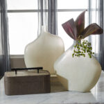 The Tesoro Box presents an inset slate veneer top wrapped in smoke-grey leather with topstitched detail. The box is enhanced with a matte black, hand-hammered cast iron handle and includes a fully lined interior.
