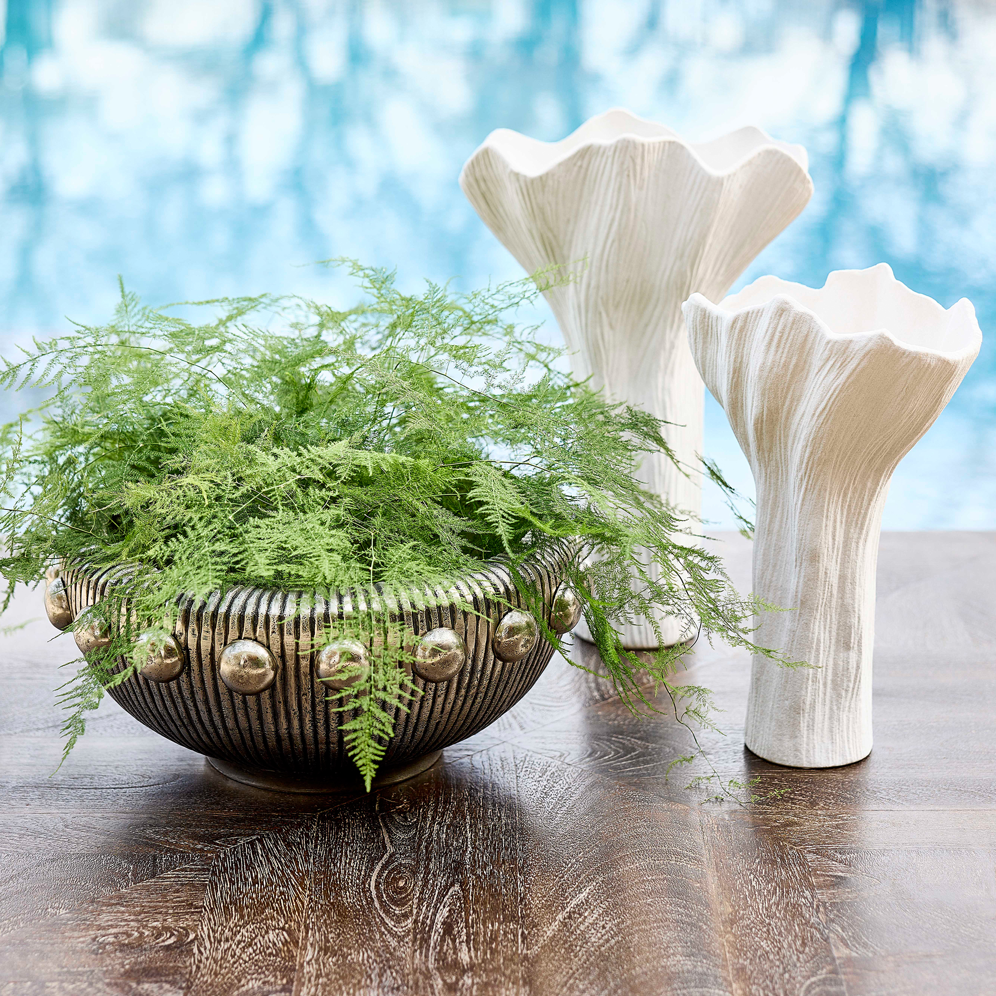 A celebration of nature’s beauty captured in elegant simplicity, the Tulip collection of ceramic vases showcases an organic floral shape that evokes the graceful curves of a tulip in full bloom. These vases are crafted in molds and feature a white bisque finish that lends them a raw texture and adds depth and character by providing a tactile experience that invites touch. Indulge in the enduring beauty of organic shapes and raw textures of the Tulip collection, where each vase tells a story of nature’s inspiration. Available in two sizes.