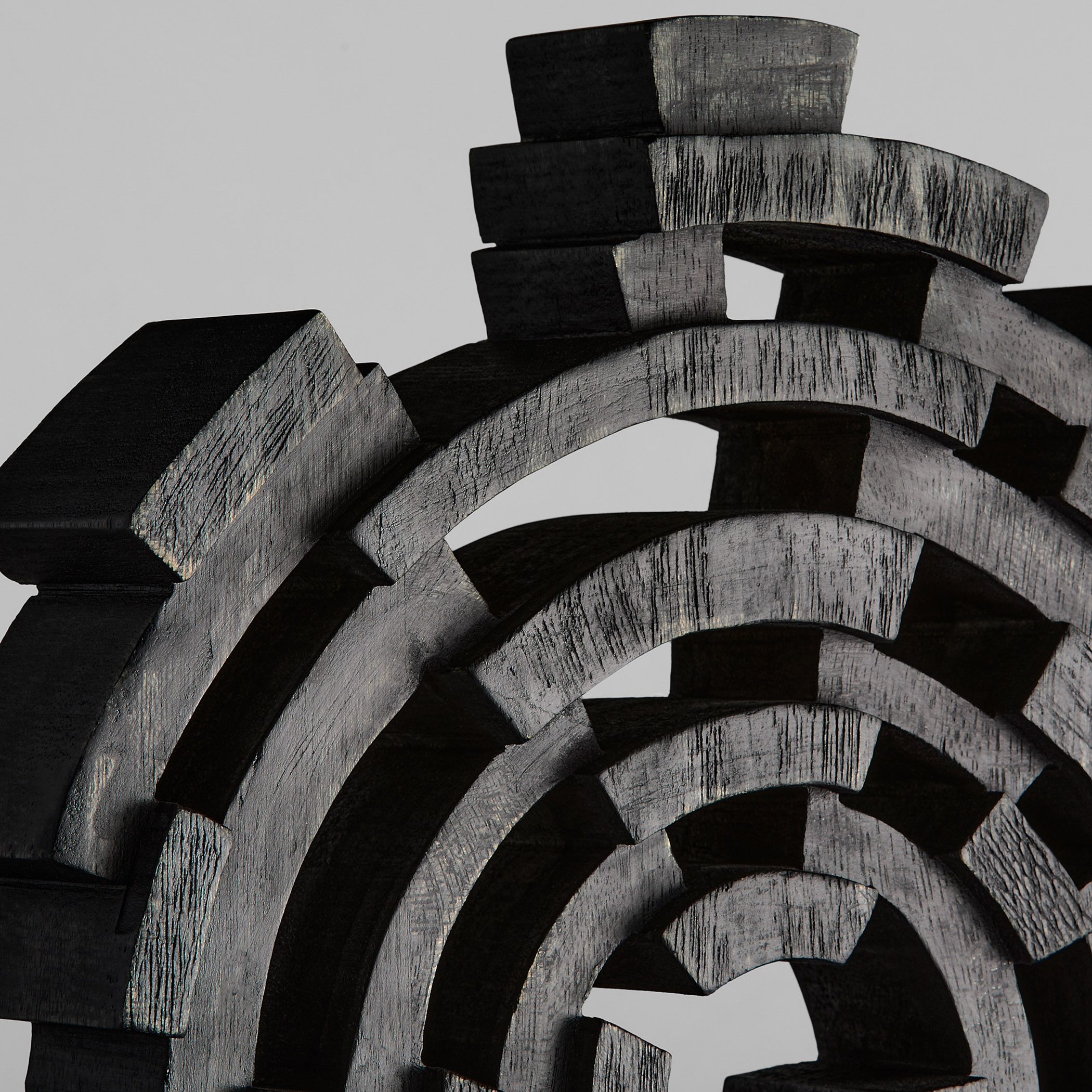 The Vortex Sculpture is an abstract, hand-carved masterpiece crafted from Ardu wood in a rich dark walnut finish. Its unique design and intricate detailing make it a striking accent piece.