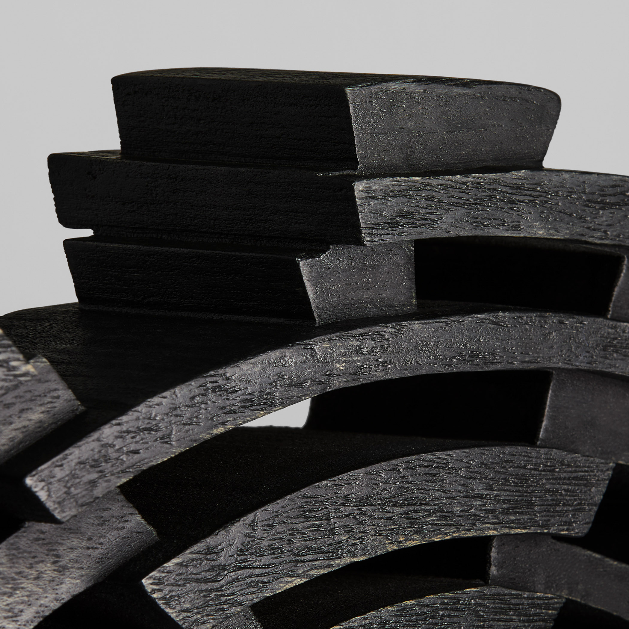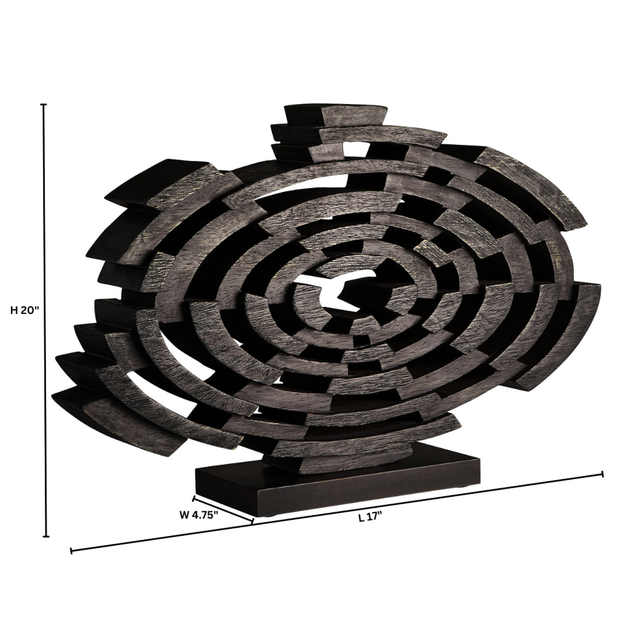 The Vortex Sculpture is an abstract, hand-carved masterpiece crafted from Ardu wood in a rich dark walnut finish. Its unique design and intricate detailing make it a striking accent piece.