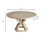 The Zeno dining table features a hefty circular table top mirrored by a smaller round base. Oak wood pieces are carved and finished in grey. Curved lines and a soft finish add gentle neutrality to many designs and styles. Add comfort and warmth to a breakfast nook or formal dining area by placing the Zeno dining table.