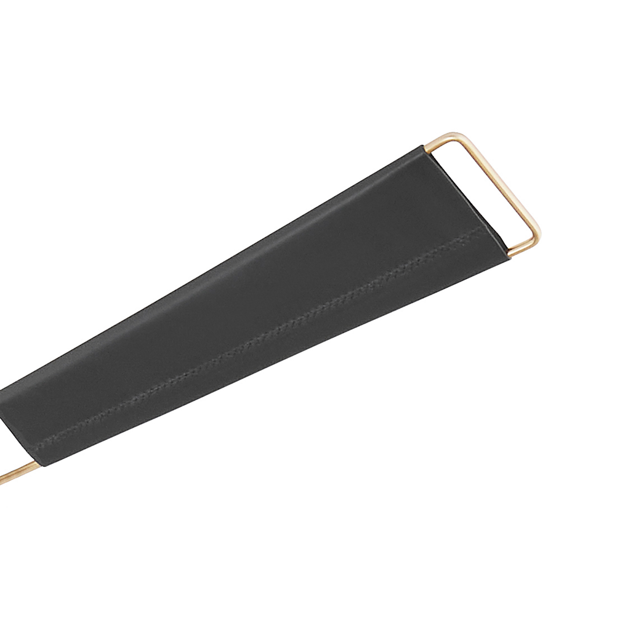 Named after a light westerly wind, the Zephyr ceiling fan creates a stunning display of mixed material. Three black leather-wrapped blades with exposed aged brass steel frames meet around a central circular motor housing. Cross stitching along the blades adds a layer of detail to the composition. A round canopy suspends the fixture with a matching aged brass downrod. Add a cool breeze with the dry-listed Zephyr ceiling fan to your next interior design project. Wall control with removable remote included.