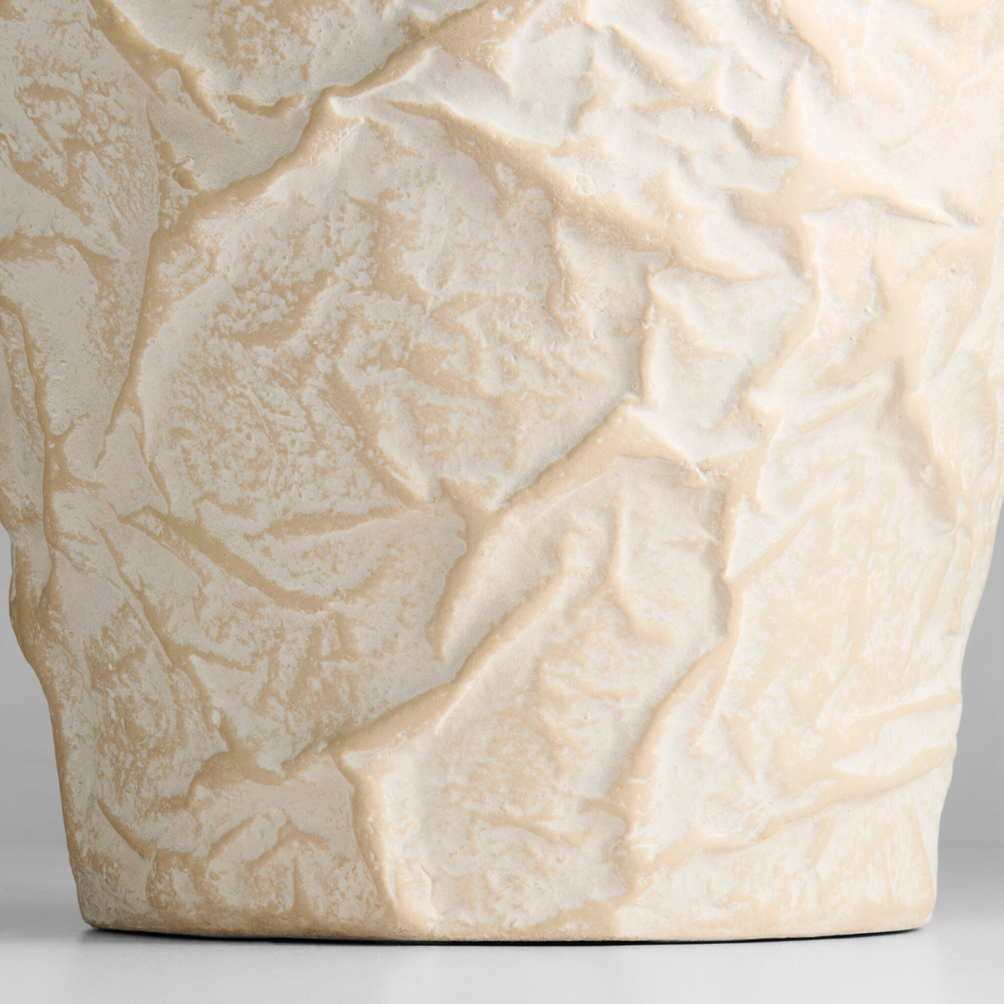 Inspired by the art of crumpling materials to create shapes and textures, artisans apply antiquing details by hand to the raised sections of the Zimurtu vases, creating deep contrast. Their large scale commands attention whether displayed individually or clustered in groups, making them perfect statement pieces. Made from Ecomix, a biodegradable, eco-friendly material.